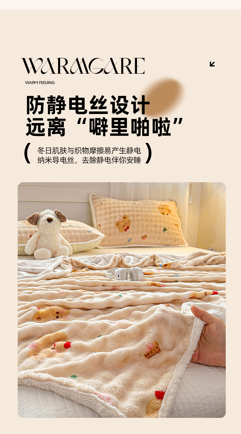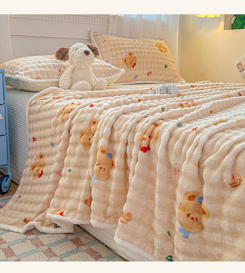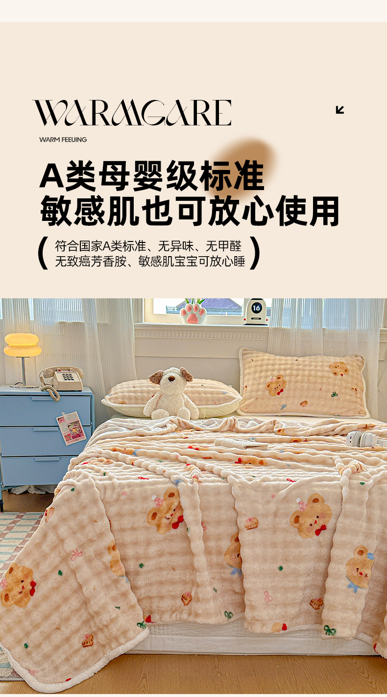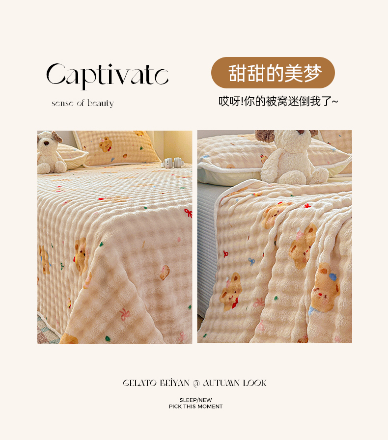 • 91家纺网 家纺一手货源 找家纺 丝芙妮家居(原乐视家纺) 2025新款A类牛奶泡泡绒印花单品床单 纯真小熊