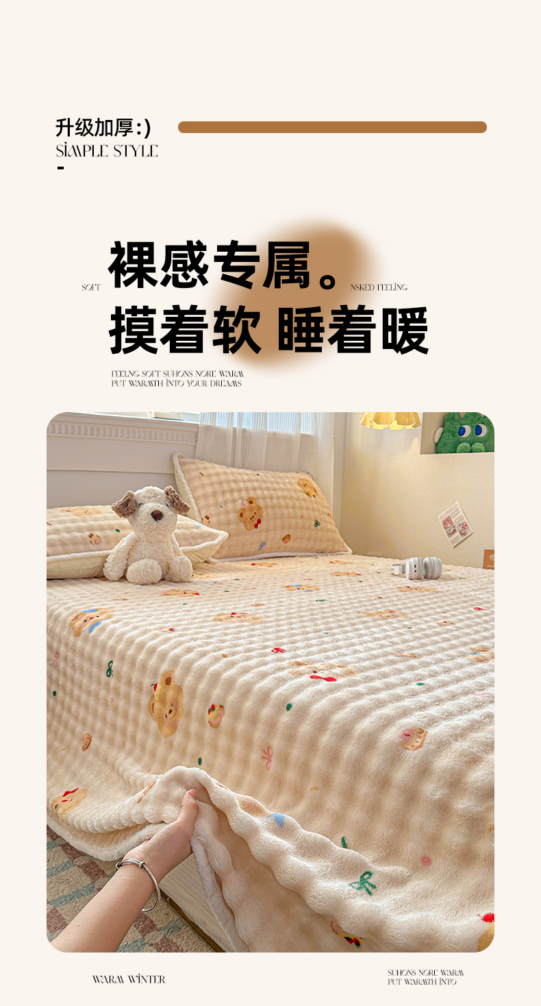 丝芙妮家居(原乐视家纺) 2025新款A类牛奶泡泡绒印花单品床单 纯真小熊