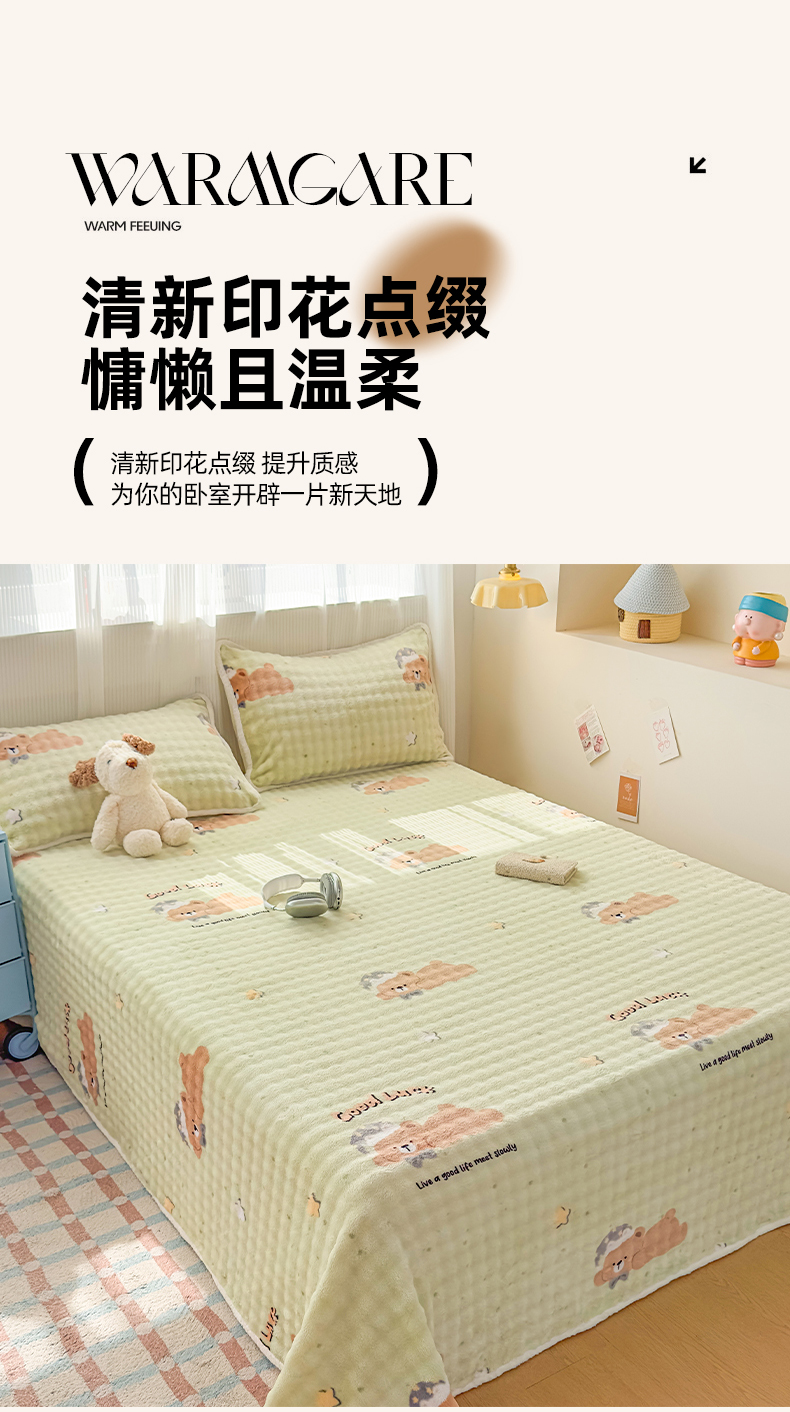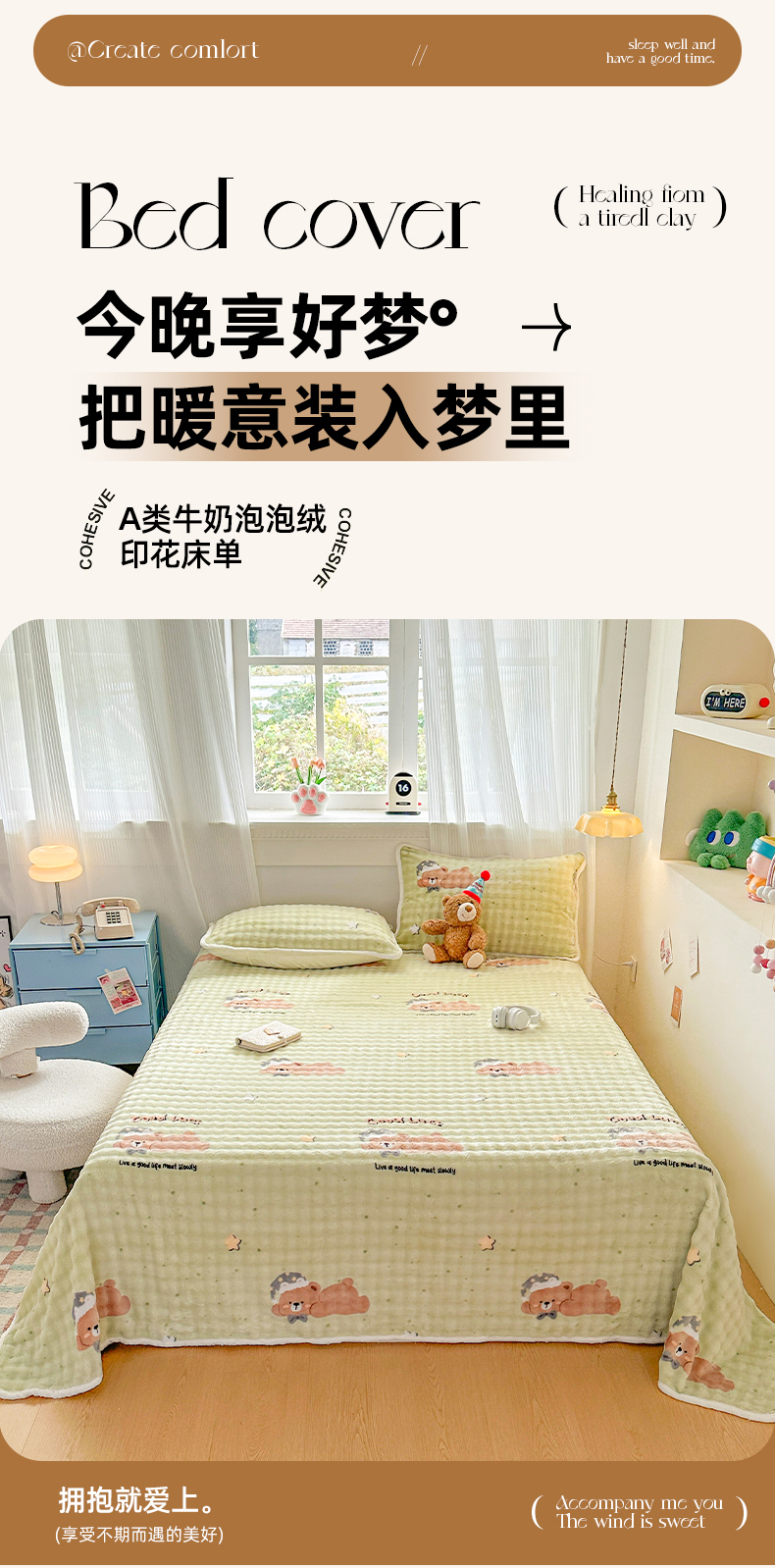 丝芙妮家居(原乐视家纺) 2025新款A类牛奶泡泡绒印花单品床单 晚安宝贝