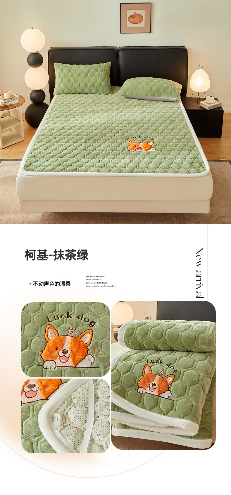 商品名称:永旺家纺 2025新款宝宝牛奶绒床护垫床垫-柯基 柯基-抹茶绿