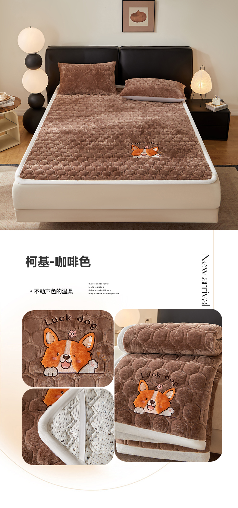 (总)永旺家纺 2025新款宝宝牛奶绒床护垫床垫-柯基,组合图仅供展示不可下单,柯基-黛粉,柯基-海洋蓝,柯基-咖啡色,柯基-抹茶绿,柯基-太空灰,柯基-天空蓝