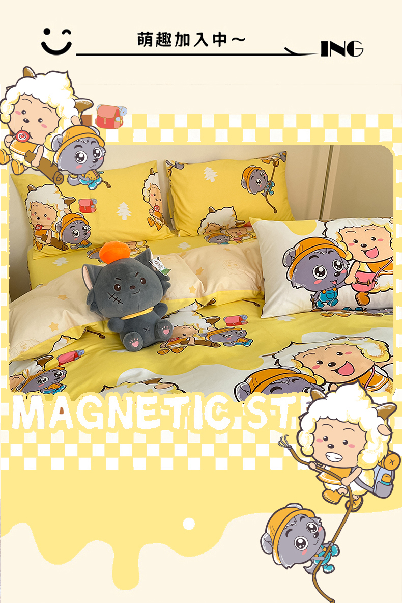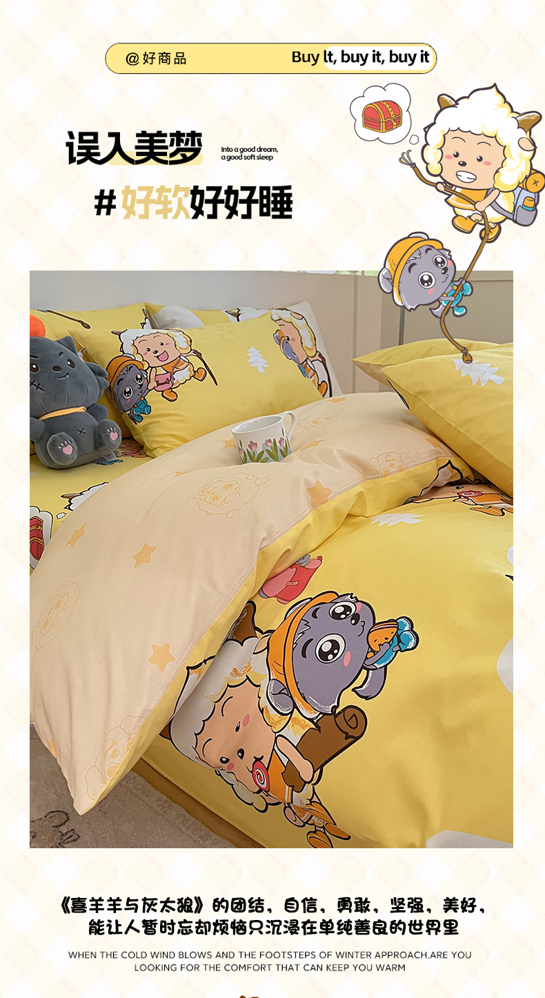 当前位置: 91家纺网 > 商品网购 > 床品套件 > 四件套 > 全棉普通四件套 > 金鑫汇家纺 2025新款喜羊羊与灰太狼全棉四件套 寻宝奇遇记