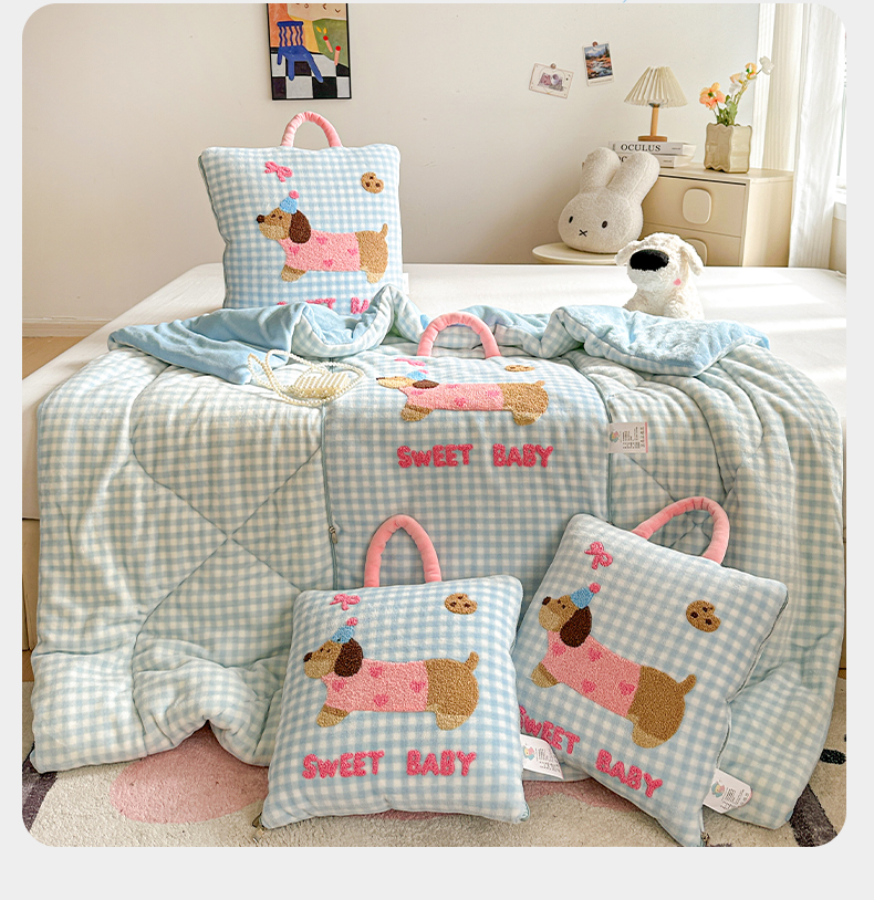(总)古本家居 2026新款四季款水洗小星人抱枕被,四季小星人绿格,四季小星人粉格,四季小星人黄格,四季小星人蓝格