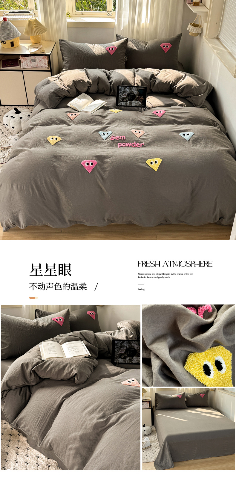 当前位置: 91家纺网 > 商品网购 > 床品套件 > 四件套 > 水洗棉四件套 > 优兰朵 2025新款水洗棉印花毛巾绣四件套 星星眼