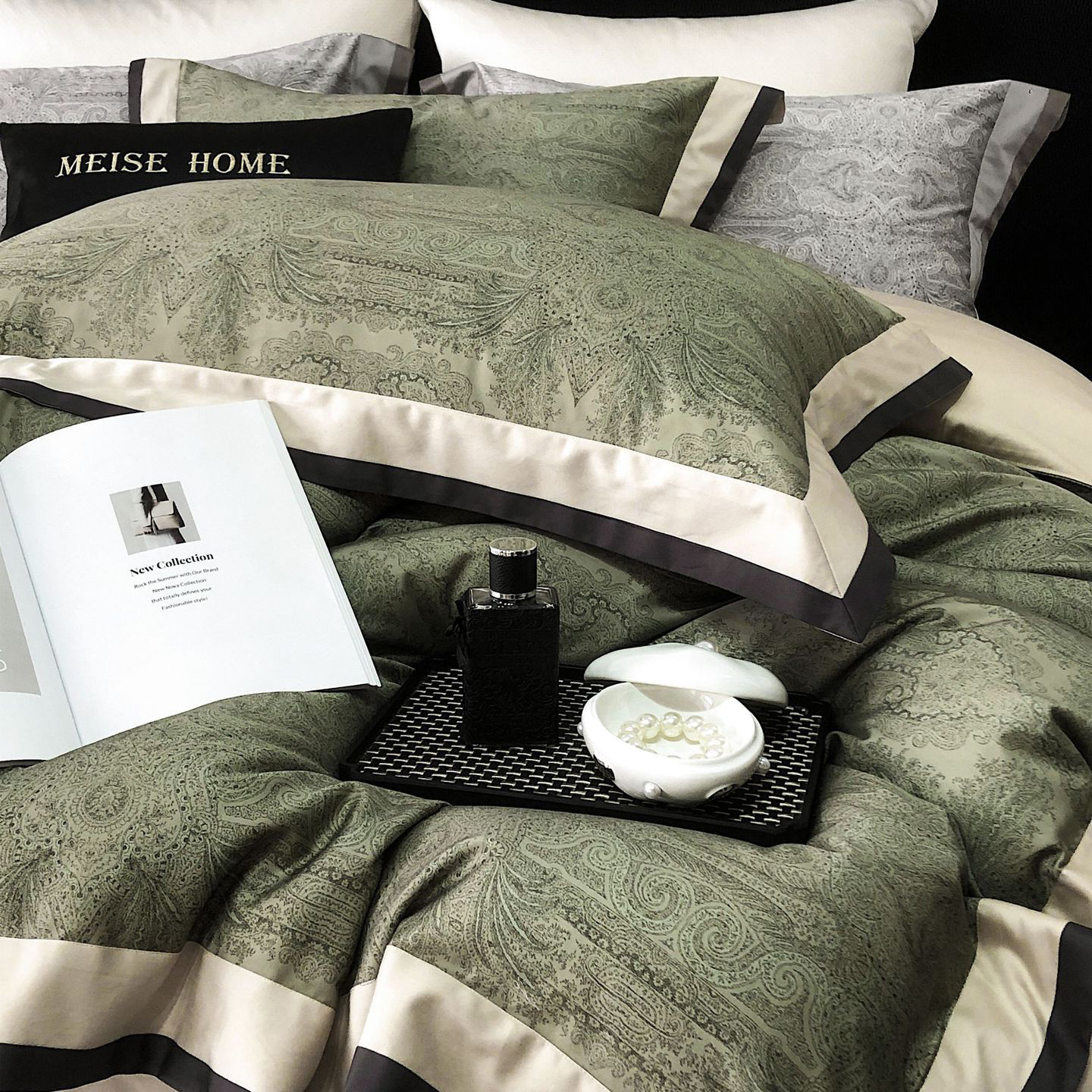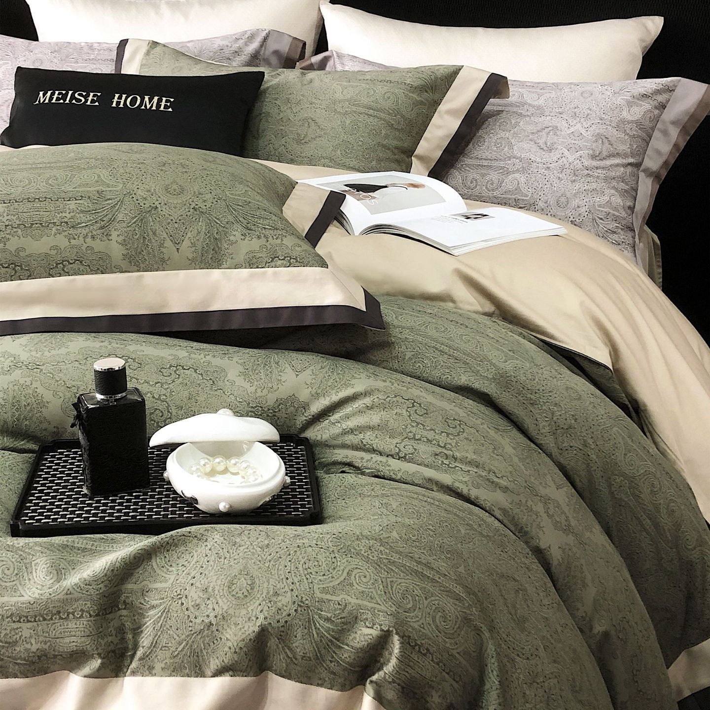 当前位置: 91家纺网 > 商品网购 > 床品套件 > 四件套 > 长绒棉四件套 > 咏绒家纺工厂店 2025新款高定美式复古风100s长绒棉四件套纯棉全棉数码印花高级被套裸睡 巴洛克-古琦绿