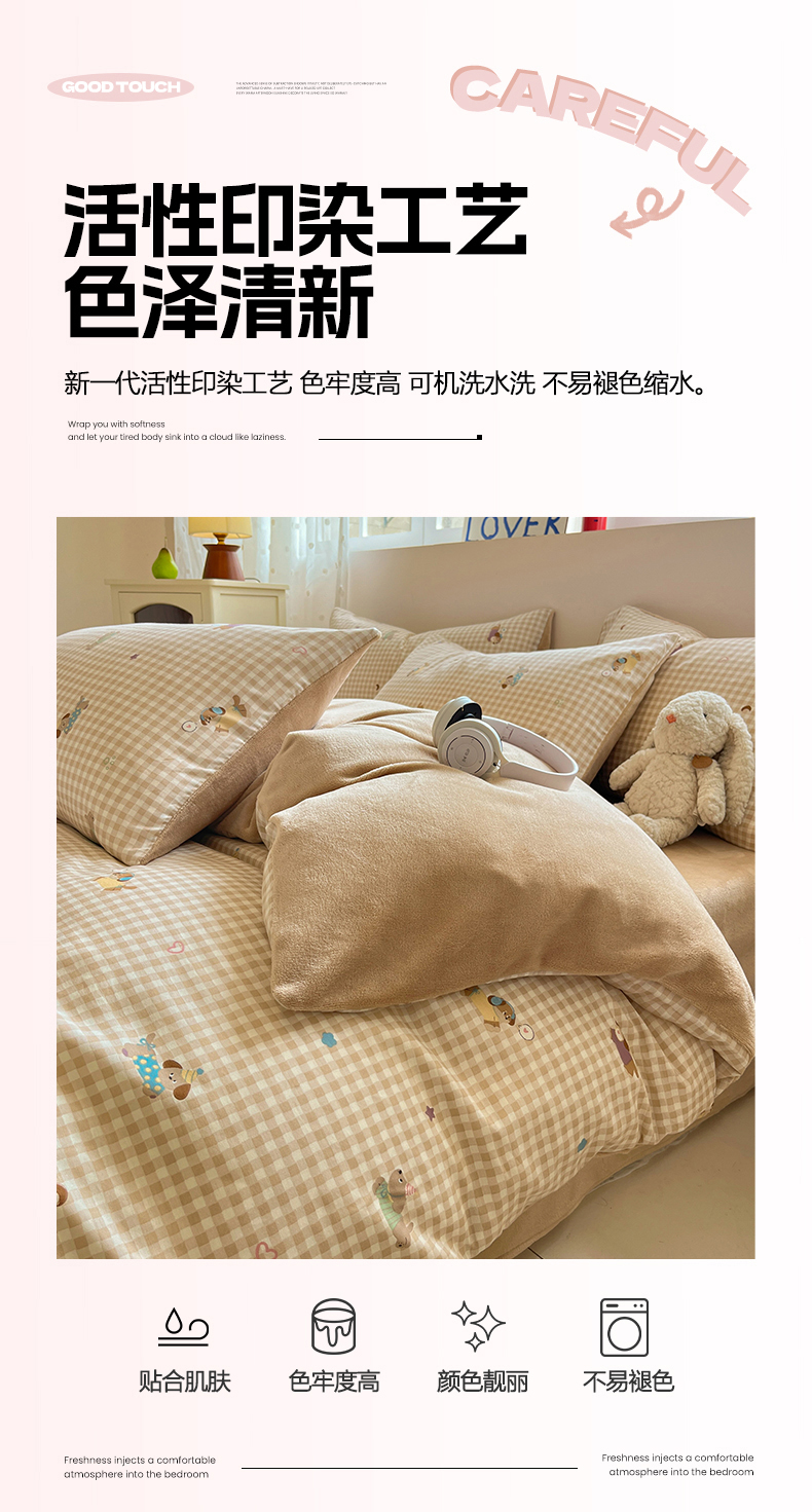 (总)吉象家纺 2025新款全棉牛奶绒印花四件套,棉绒-格子熊,棉绒-狗狗派对,棉绒-花丛小狗,棉绒-镜子海洋,棉绒-蓝色泡芙狗,棉绒-蜜罐猫猫,棉绒-蘑菇小兔,棉绒-奶油甜心熊,棉绒-苹果狗,棉绒-俏皮狗狗,棉绒-碎花狗狗,棉绒-碎花小兔,棉绒-糖纸童年,棉绒-甜心喵喵,棉绒-童趣萌新,棉绒-洋气泰迪,棉绒-爪爪会客厅