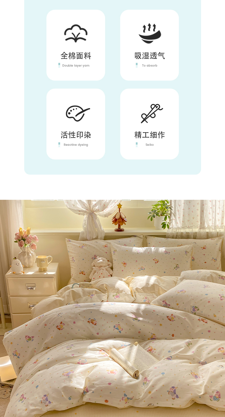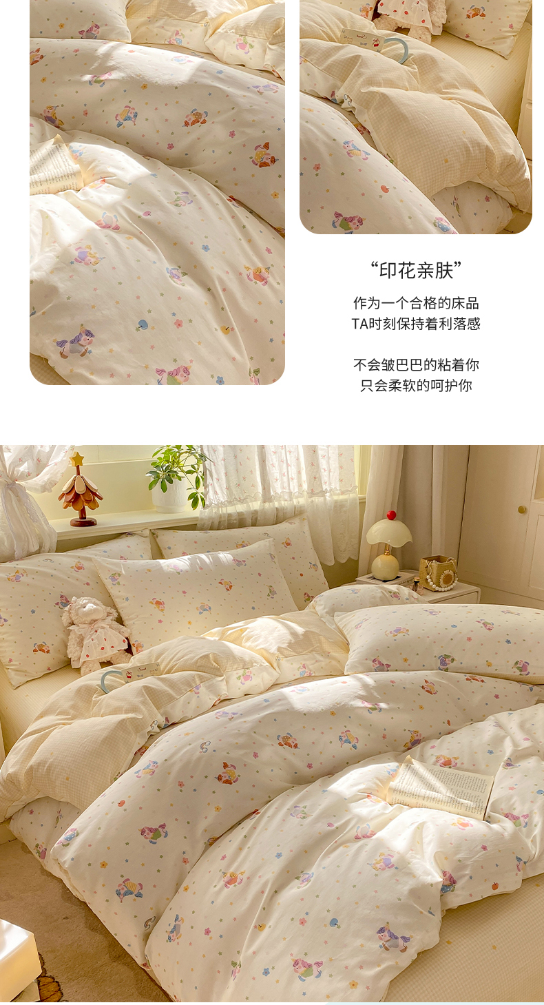 当前位置: 91家纺网 > 商品网购 > 床品套件 > 四件套 > 全棉普通四件套 > 红日子纺织品 2026新款12868纯棉全棉印花卡通系列四件套 格彩小象