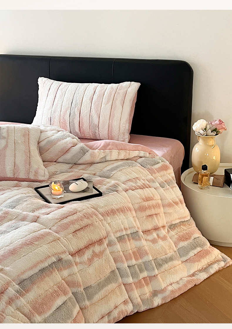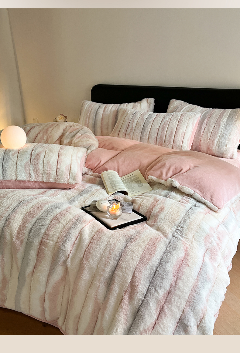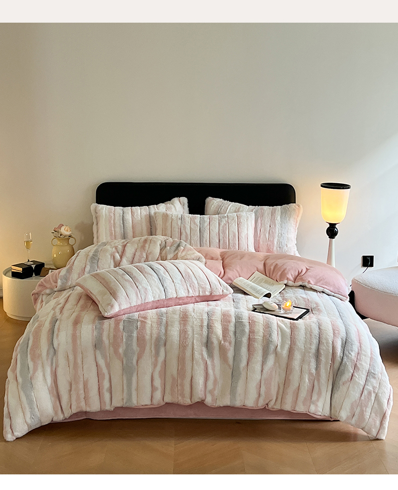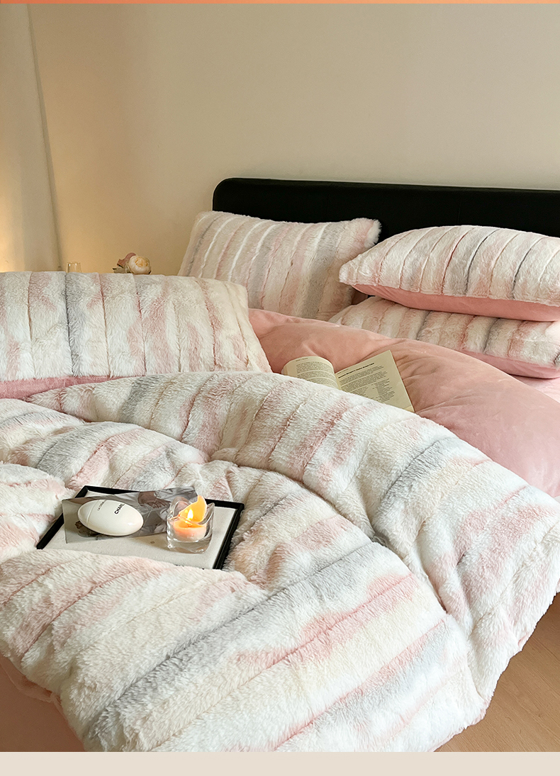 (总)玖琳家纺 2025新款托斯卡纳特价兔兔绒兔毛绒四件套,果粉,卡其,七彩 粉,七彩 绿,七彩 紫,水果 绿,烟灰