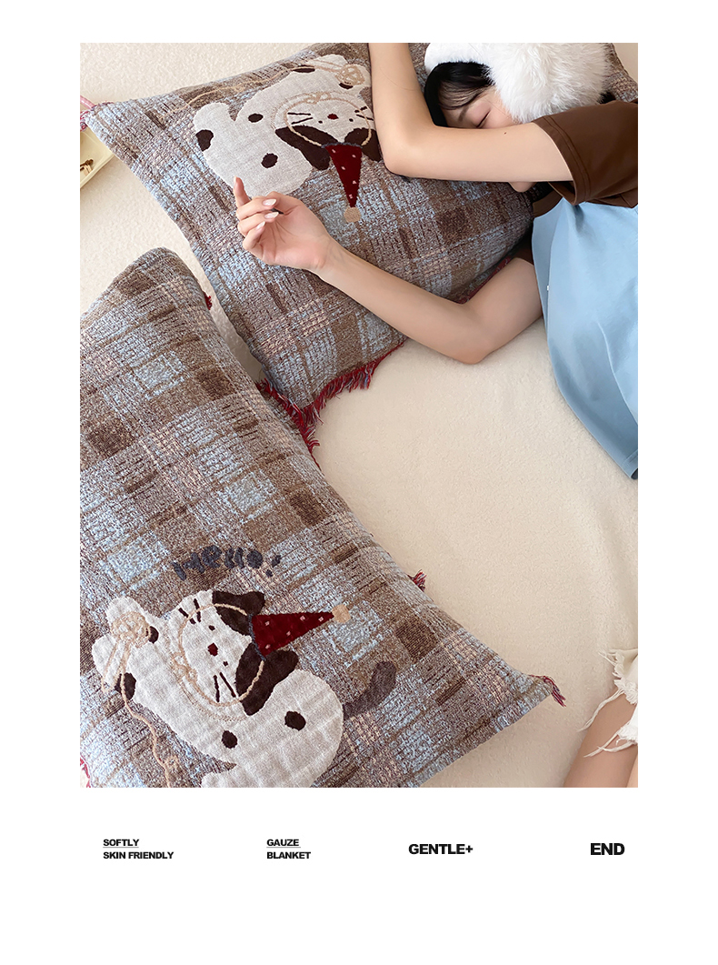 (总)麻依 2025新款安心棉枕巾四层全棉纱布枕头皮,布朗兔,彩虹点点,点点蝴蝶结-粉,点点蝴蝶结-米白,搞怪猫,韩系小樱桃,焦糖草莓,兰溪,漫语,木栖,天猫精灵,小波点,组合图