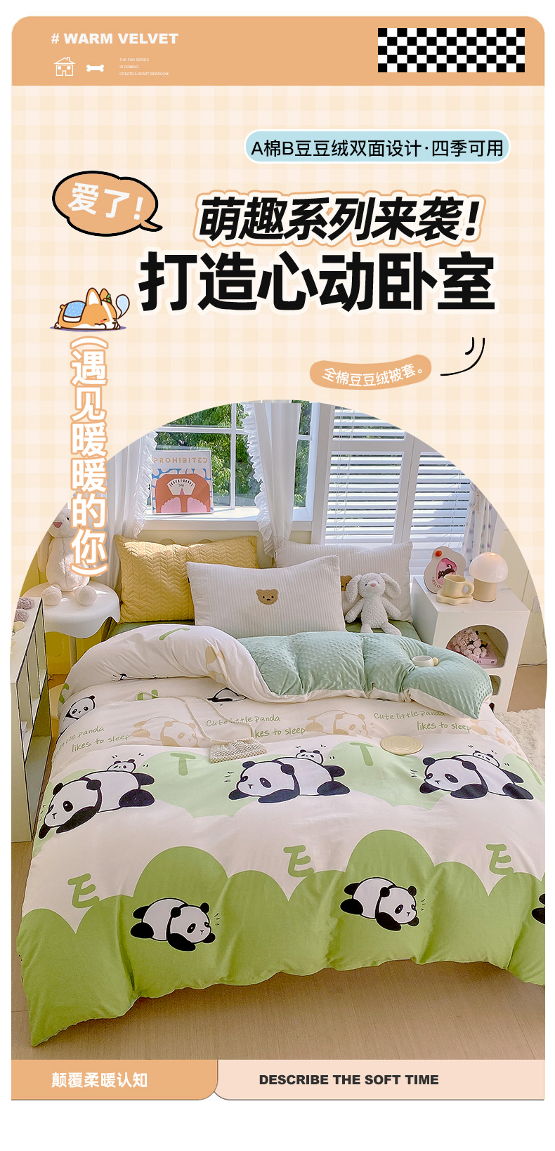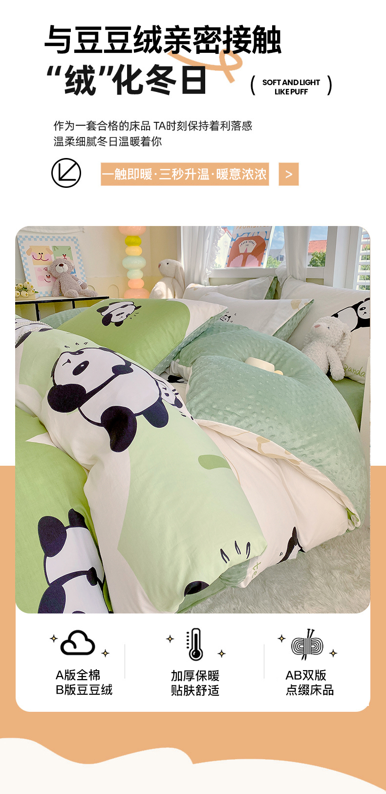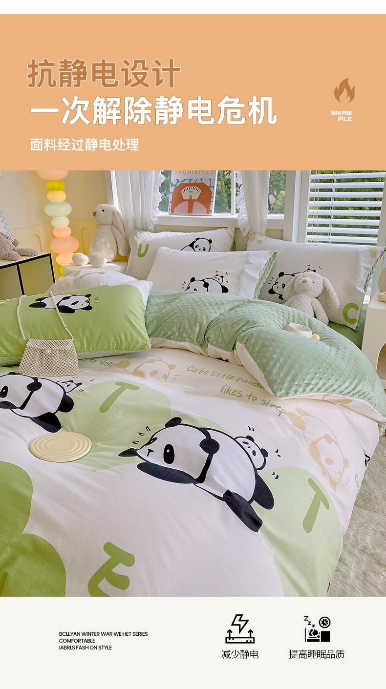 • 91家纺网 家纺一手货源 找家纺 金鑫汇家纺 2025新款全棉豆豆绒系列单被套-棉加绒系列 棉加豆豆绒-可爱熊猫