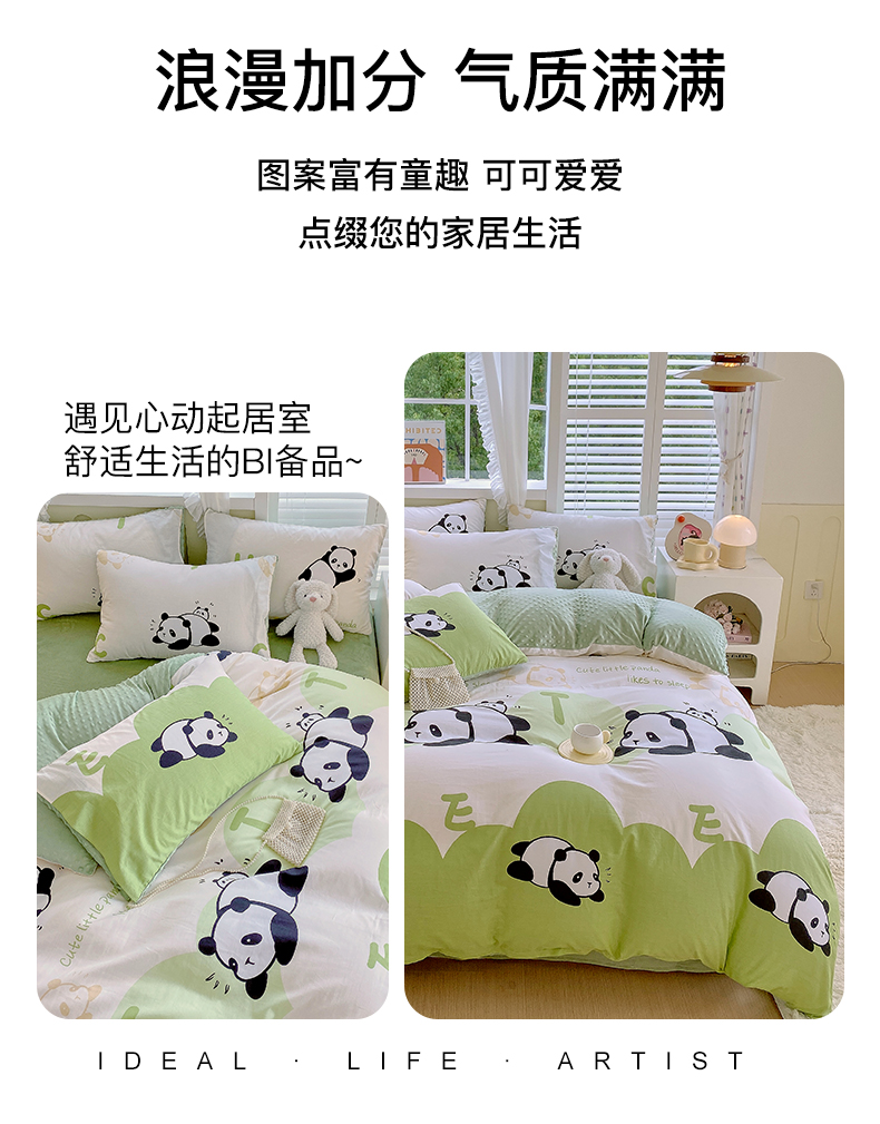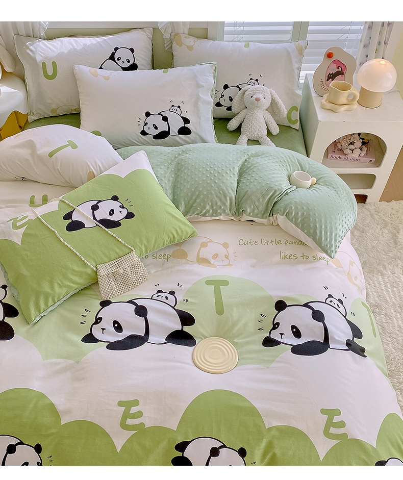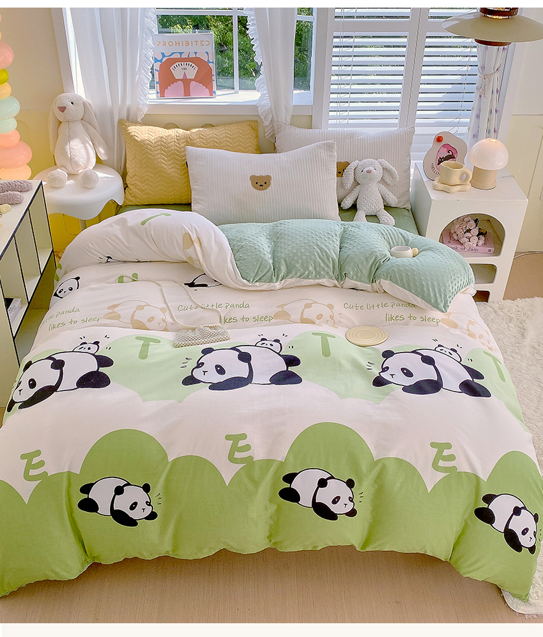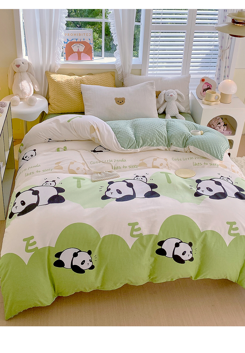 金鑫汇家纺 2025新款全棉豆豆绒系列单被套-棉加绒系列 棉加豆豆绒-可爱熊猫