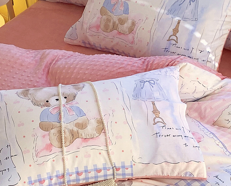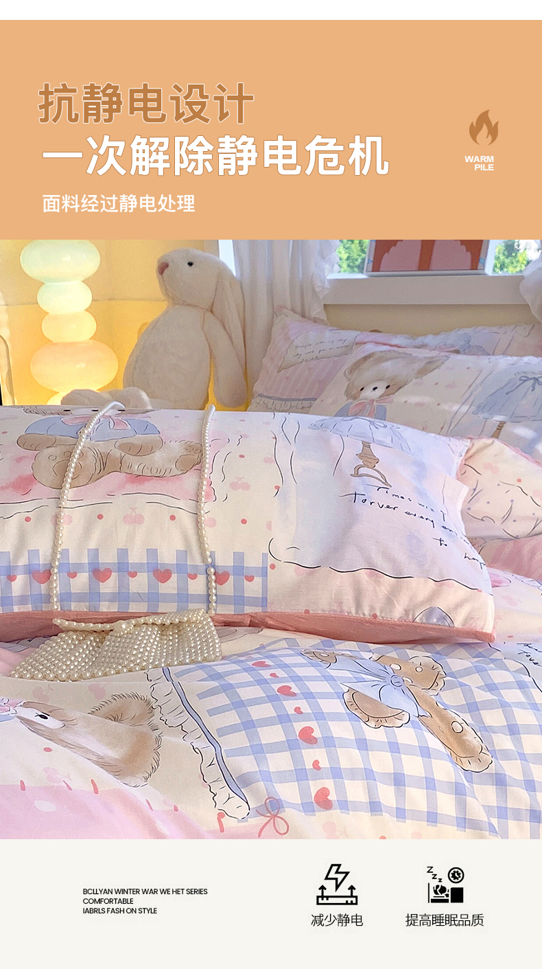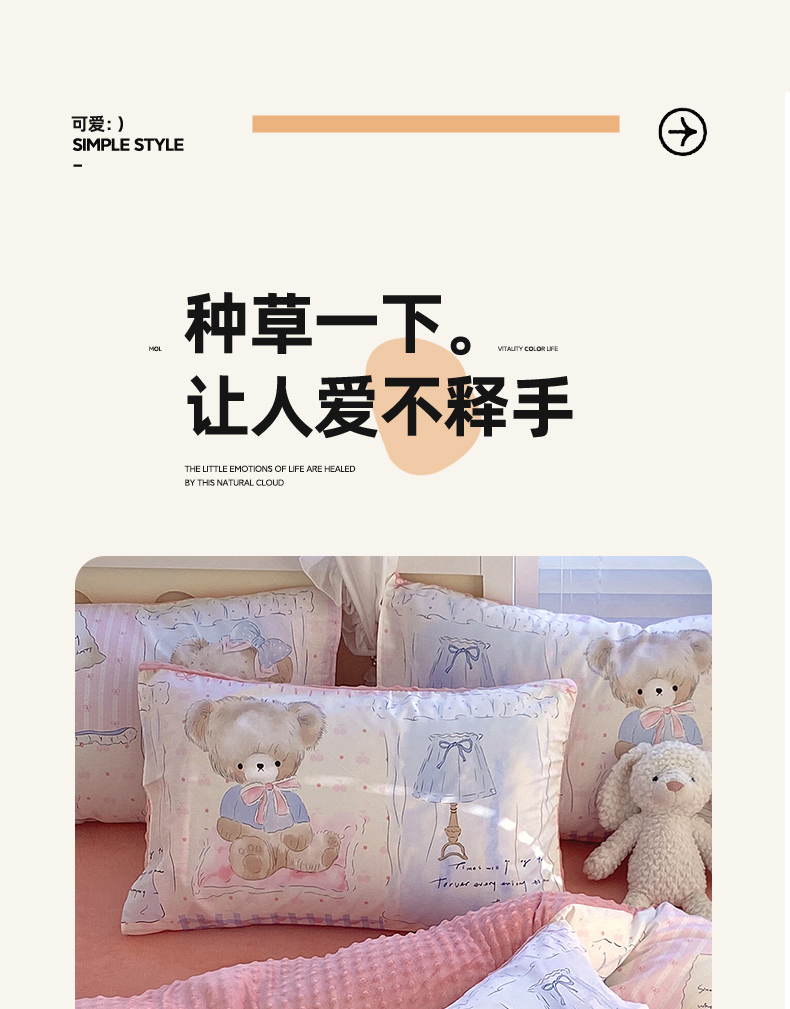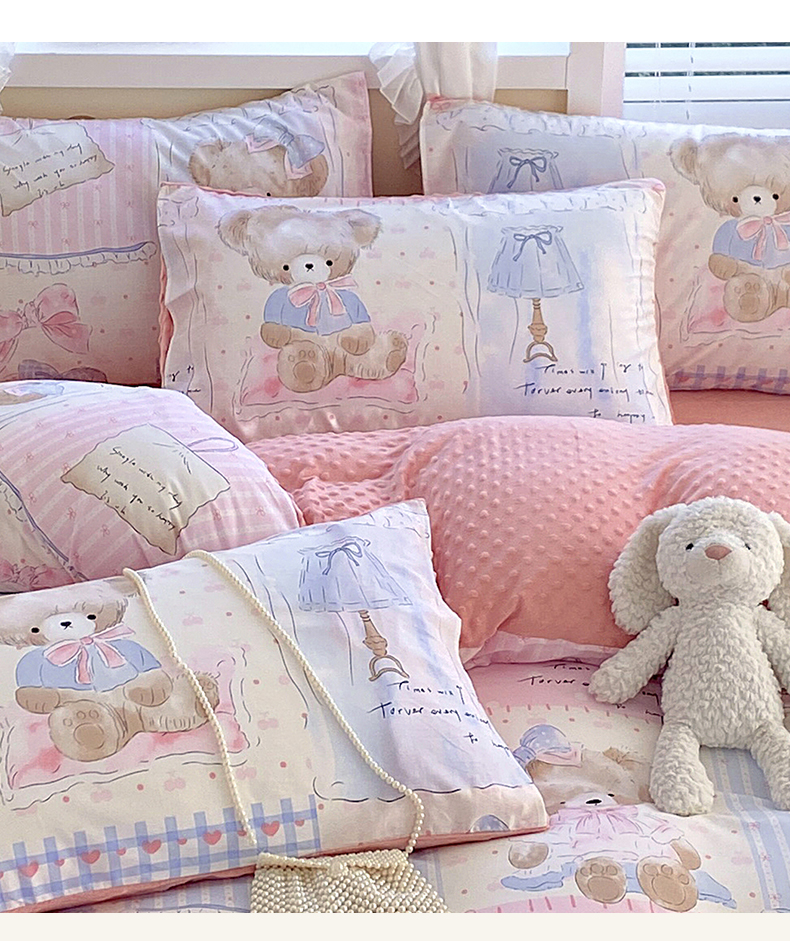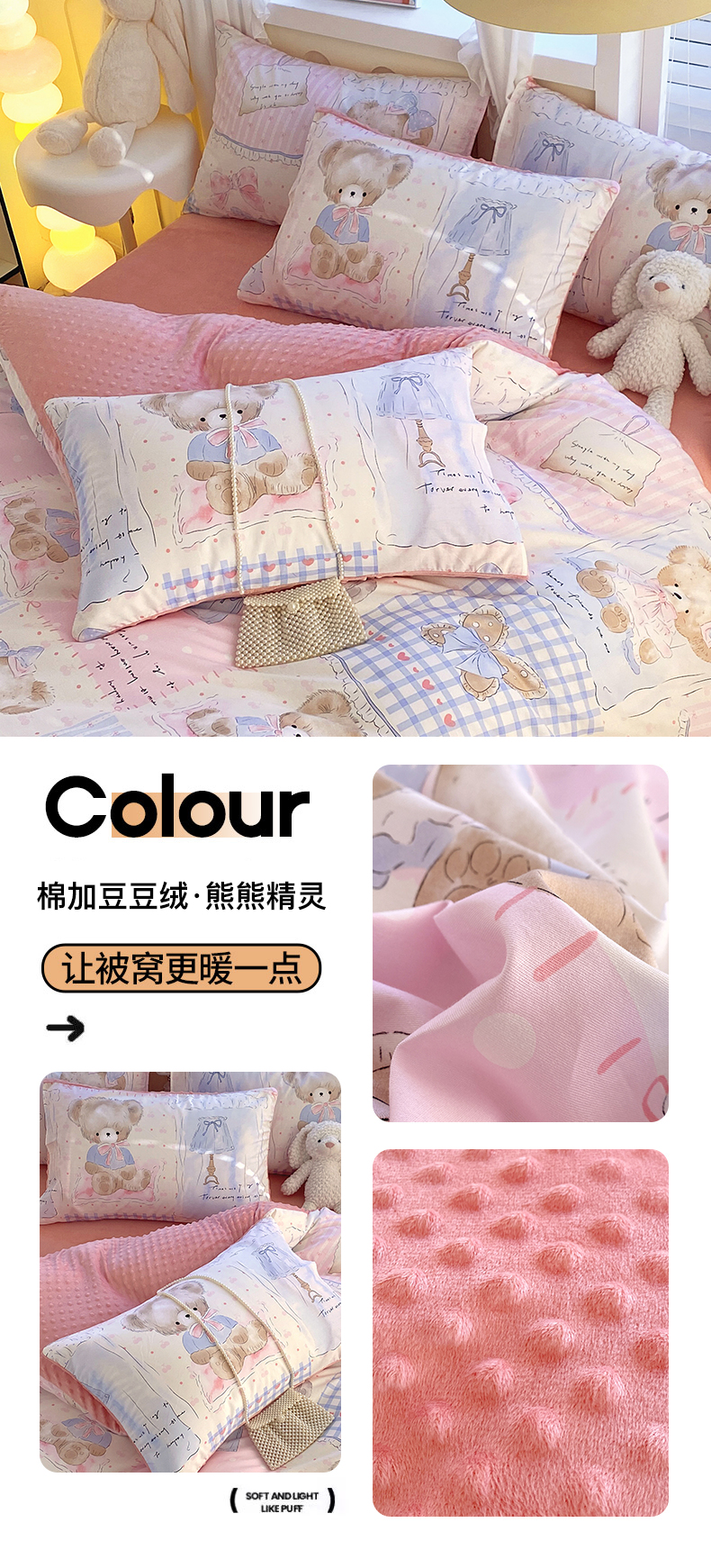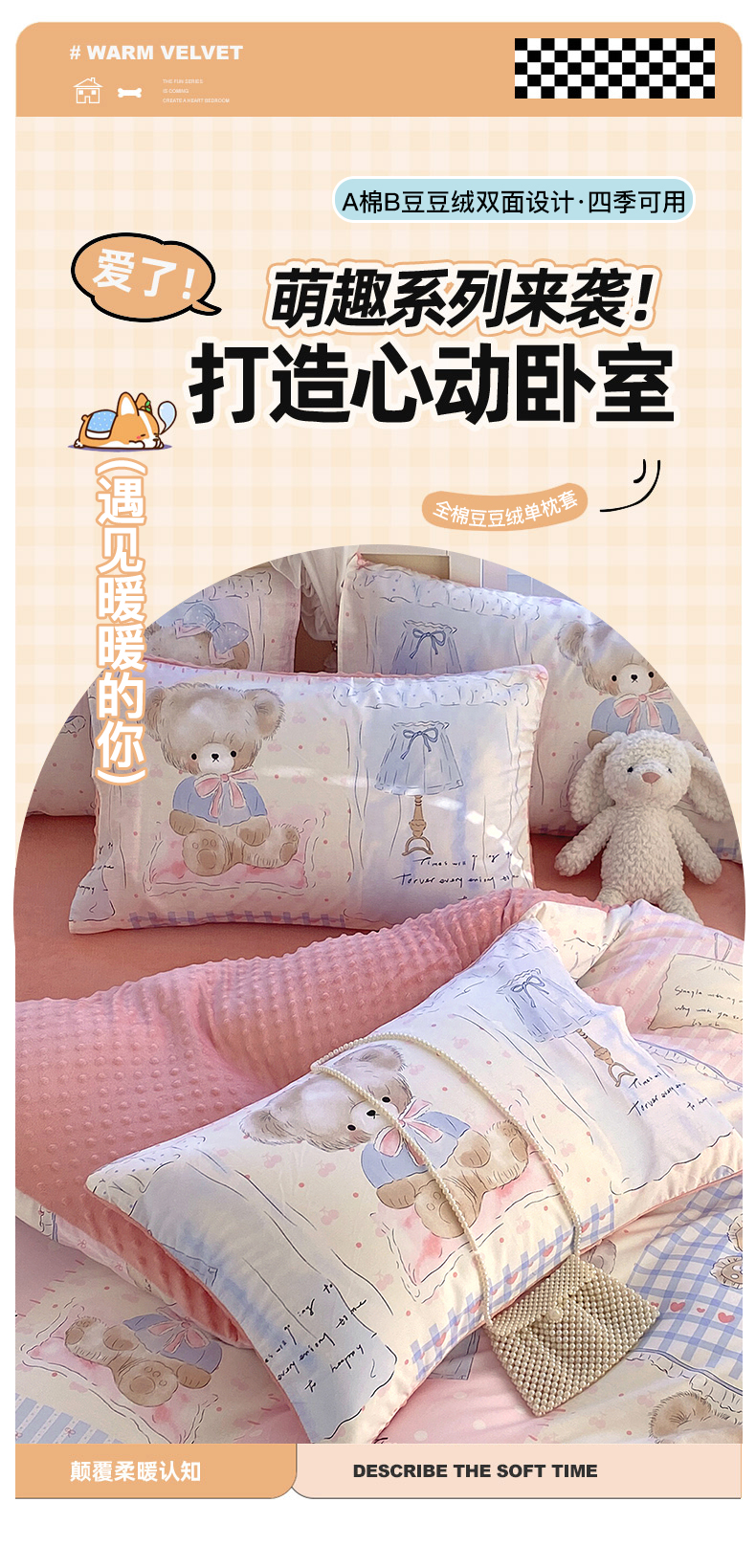 金鑫汇家纺 2025新款全棉豆豆绒系列单枕套-棉加绒系列 棉加豆豆绒-熊熊精灵