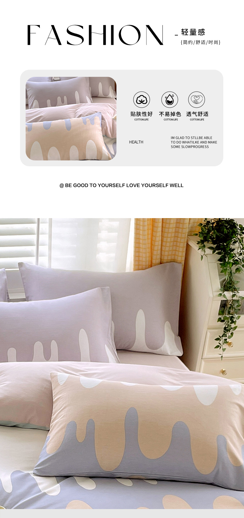 商品名称:金鑫汇家纺 2026春夏新款全棉纯棉印花单枕套 枕套单件 奶油粉