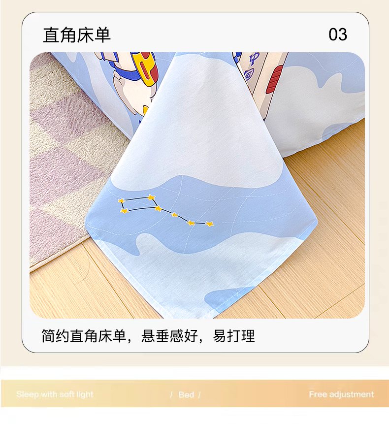 • 91家纺网 家纺一手货源 找家纺 (总)金鑫汇家纺 2026新款13070全棉单品套件系列-成人床:A版单床笠,翱翔太空,波浪世界,彩蝶飞舞,冲上云霄,传奇哪吒-红,传奇哪吒-棕,繁花之恋,海底探秘,海洋世界,海族馆,花丛兔,可爱熊猫,快乐萌兔,梦蝶,喵喵日记,奶油粉,奶油蓝,奇趣小兔,谦逊敖丙,瑞龙送福,无畏申公豹-灰,无畏申公豹-咖,五彩缤纷,小马莉儿,小美人鱼,小青龙,星际穿越,熊熊精灵,友谊足球,宇宙奥秘,足球争霸赛-黄,足球争霸赛-灰,足球争霸赛-蓝,足球争霸赛-绿