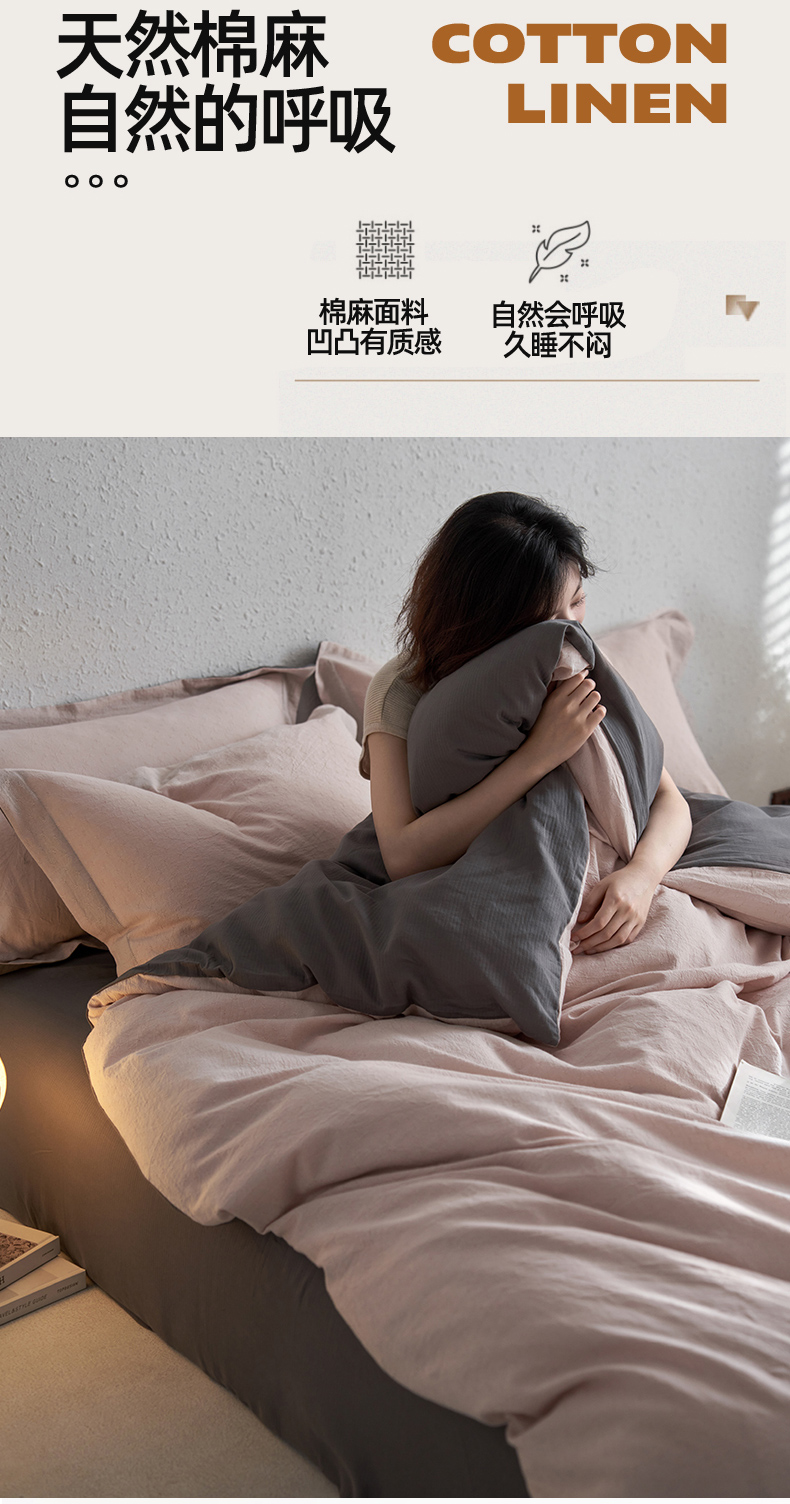 (总)笙意家纺 2025新款A类全棉棉麻织带款四件套,织带款-本色,织带款-粉色,织带款-黑灰,织带款-卡其,织带款-浅紫