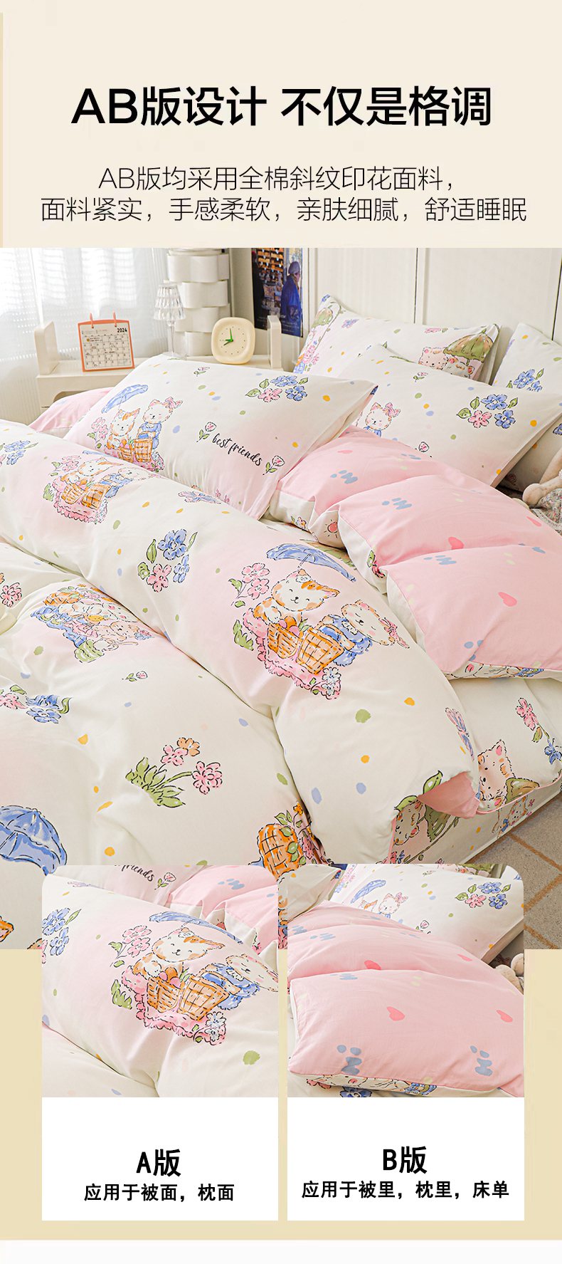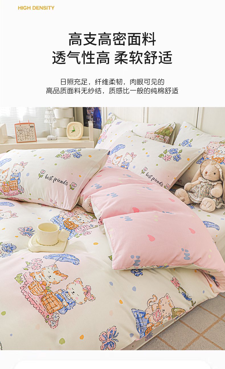 金鑫汇家纺 2026新款13070全棉单品套件系列-单品:单被套 喵喵日记