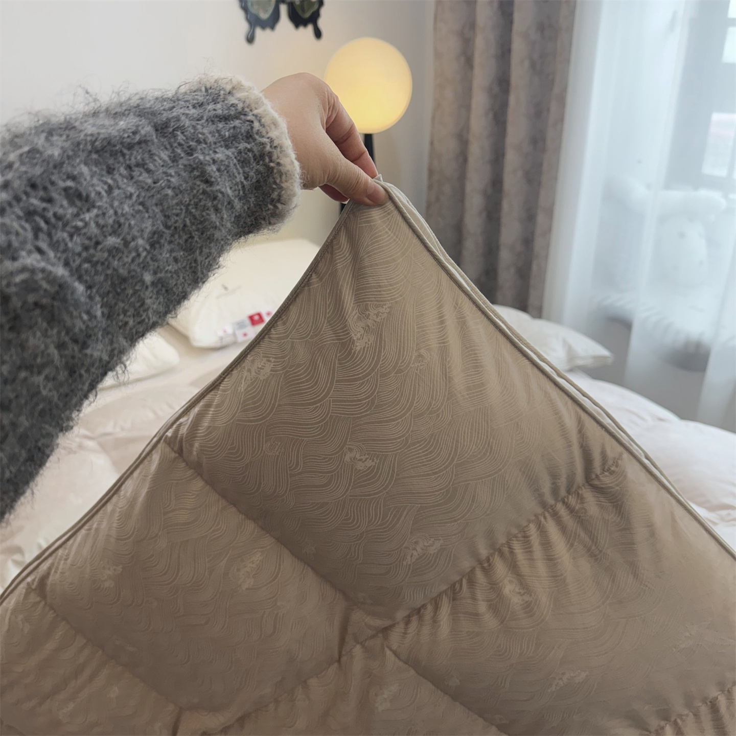 (总)御眠纺 2025新款高端提花羽绒被鸭绒被贡缎提花单层羽绒被壳,飘金色,飘高级灰,飘颜粉,