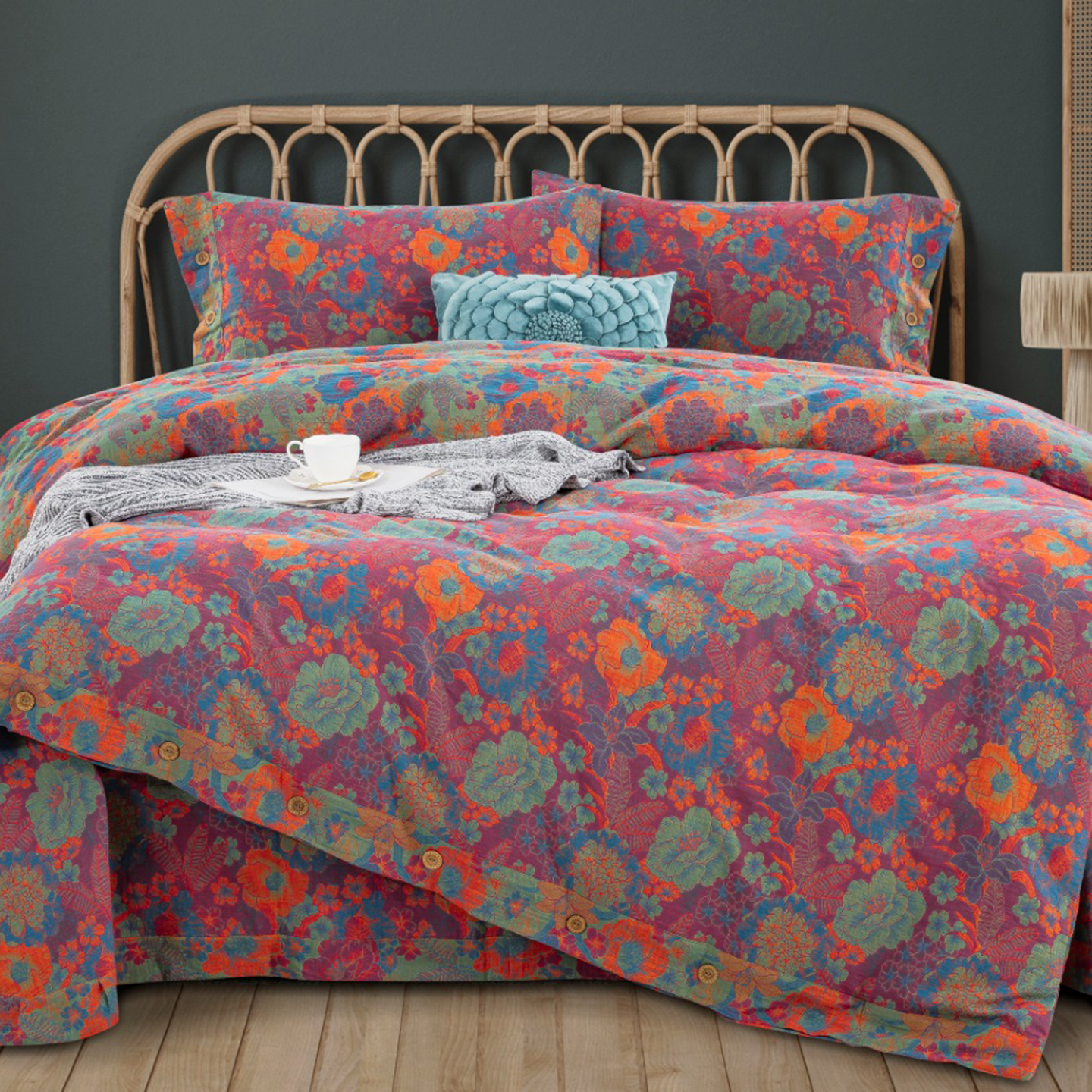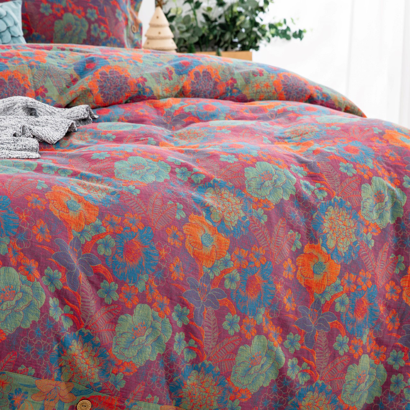(总)仰望棉麻双层纱供应链 2026新款全棉色织提花双层纱纽扣款四件套--花语