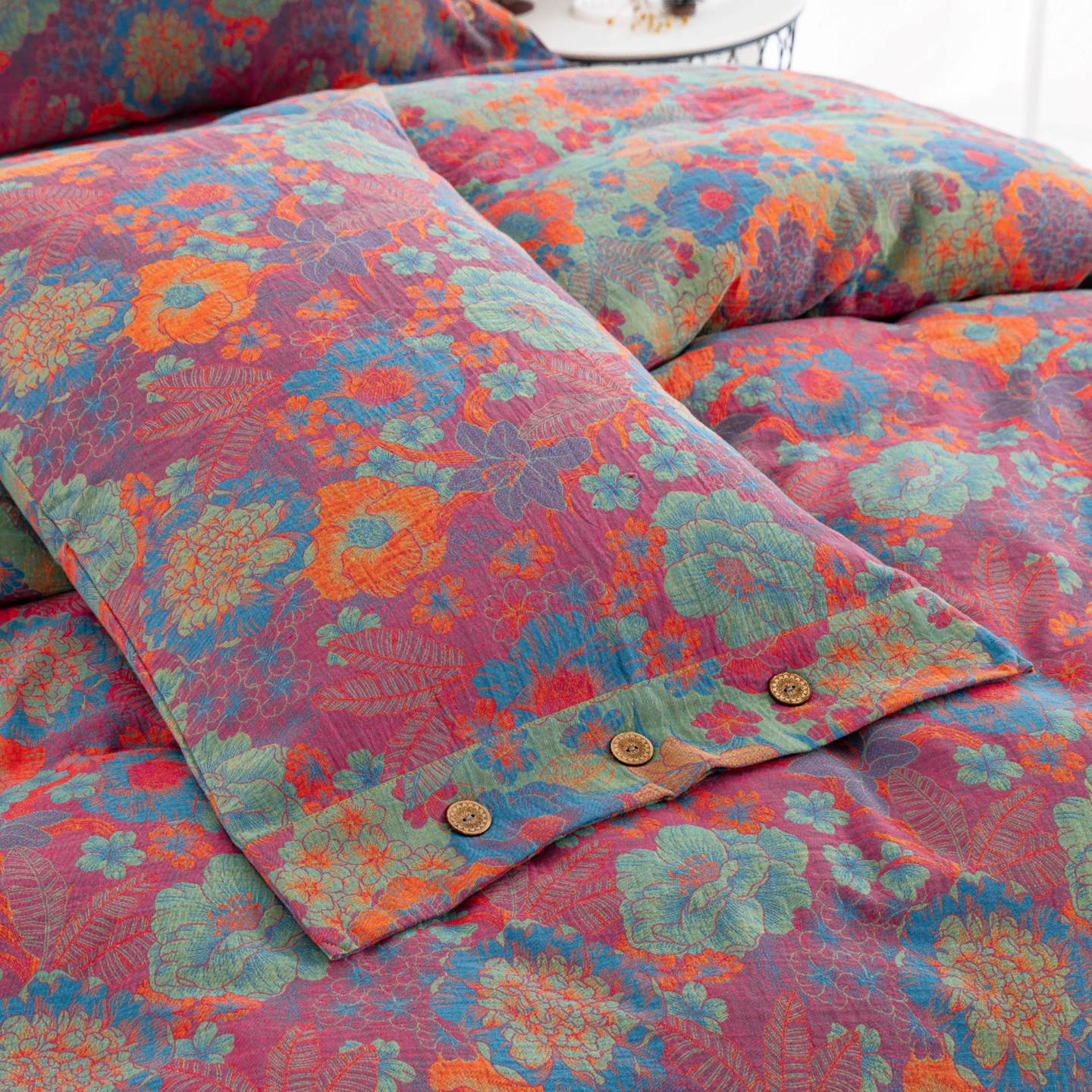 商品名称:(总)仰望棉麻双层纱供应链 2026新款全棉色织提花双层纱纽扣款四件套--花语