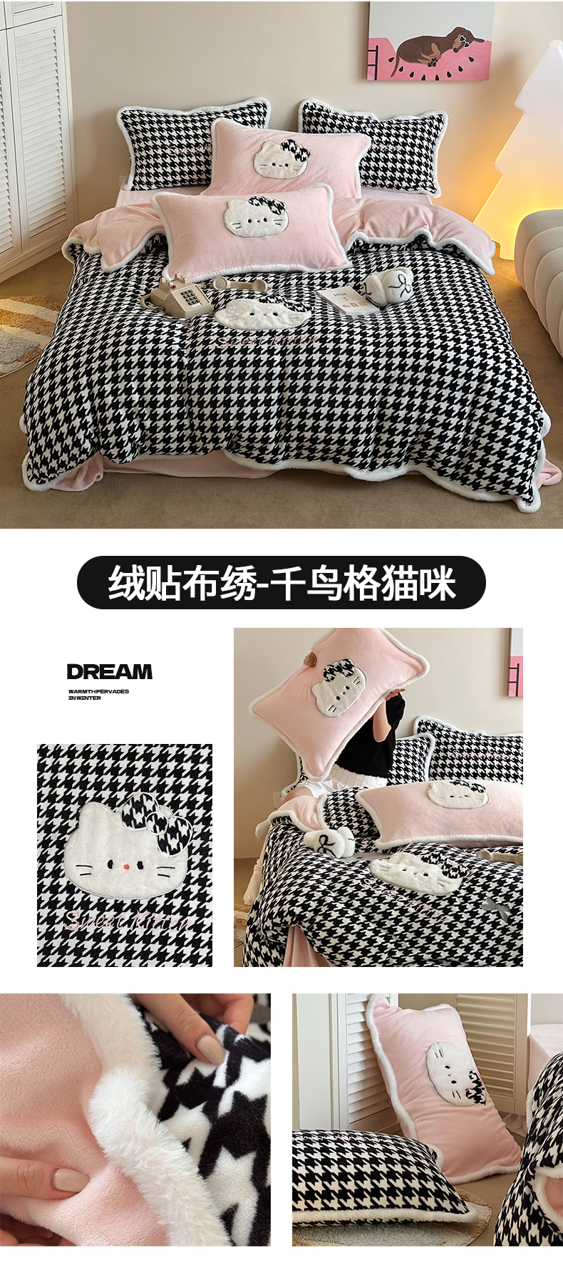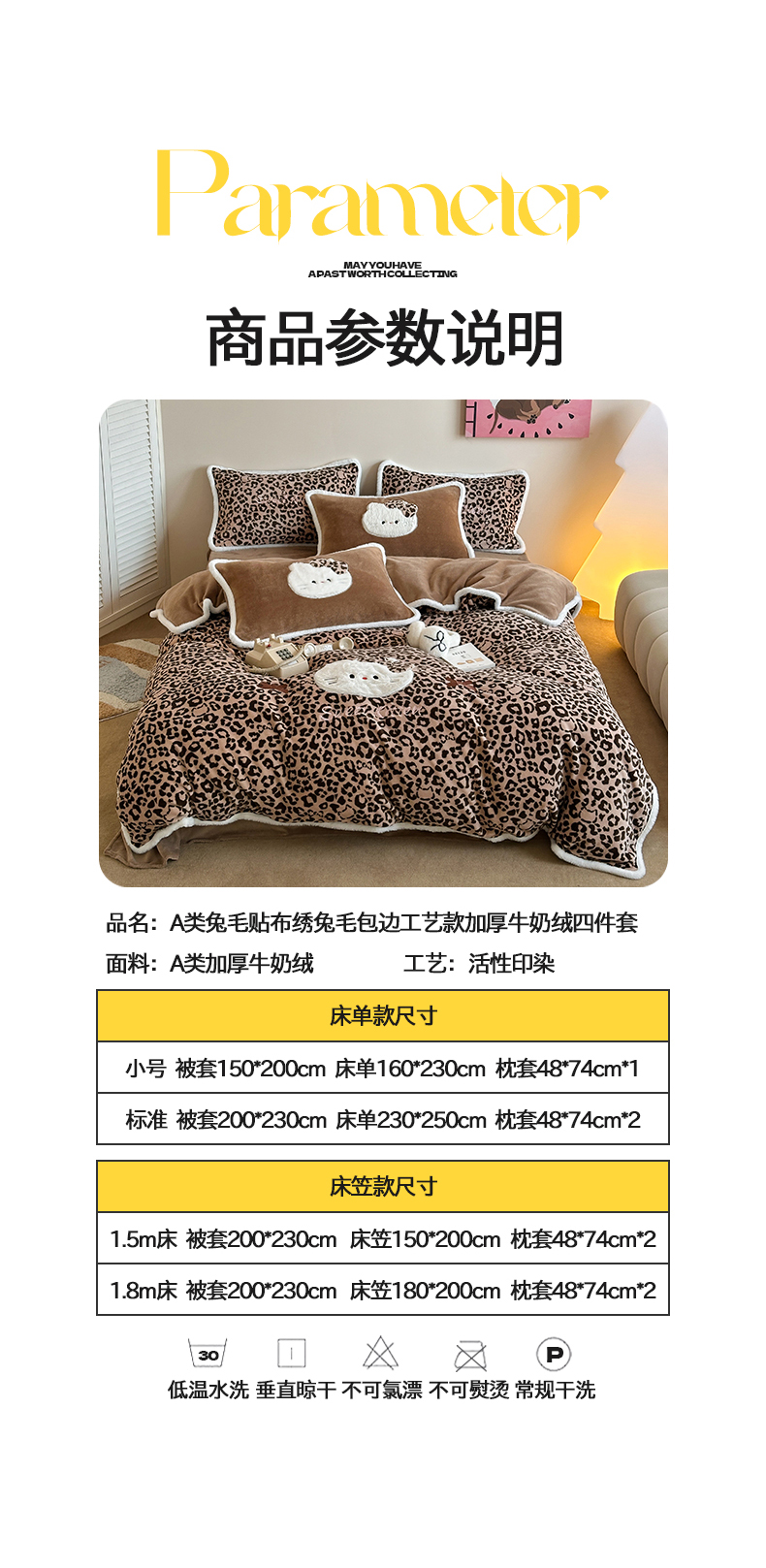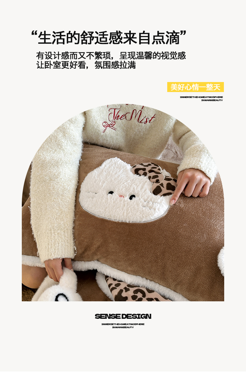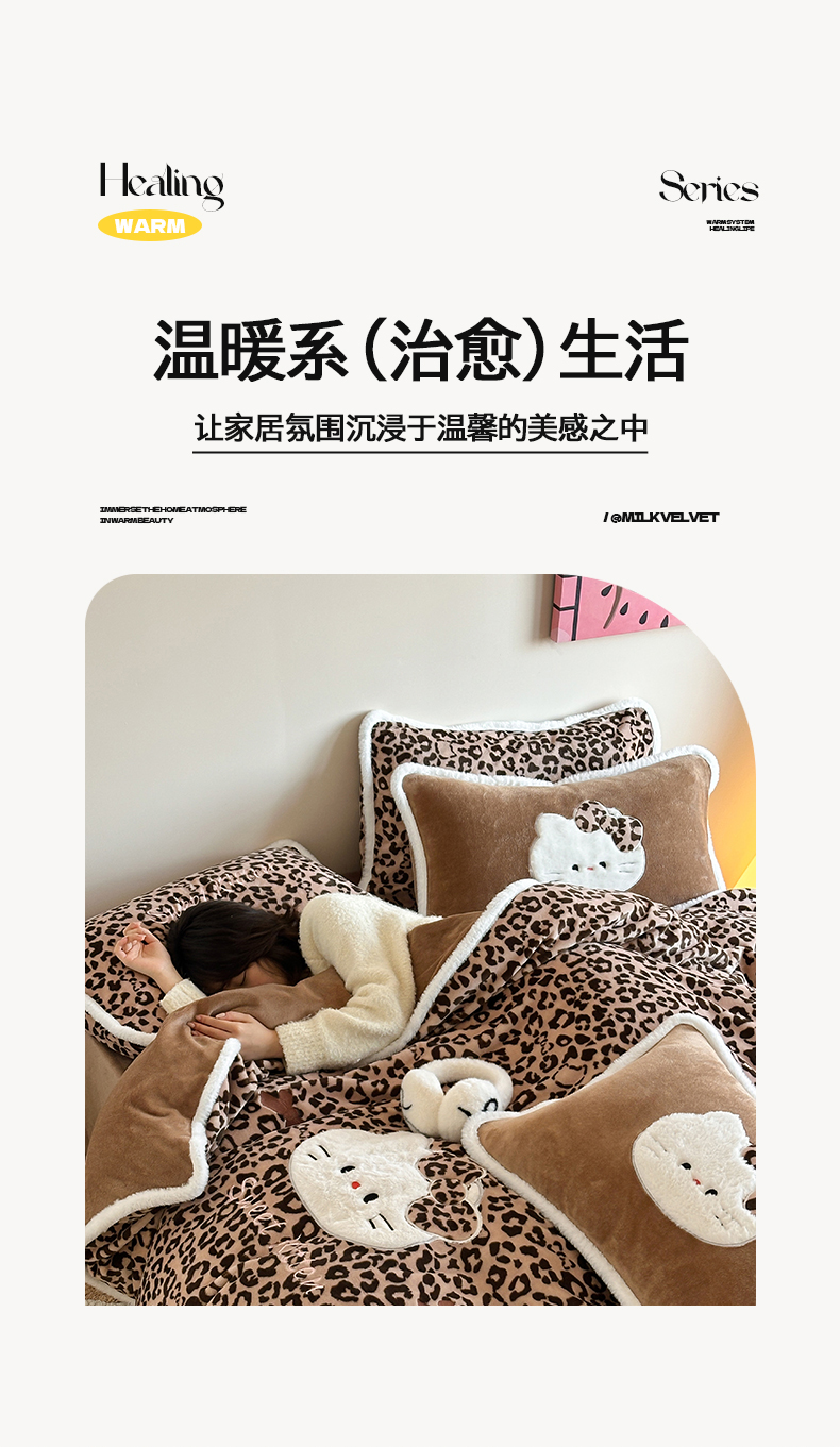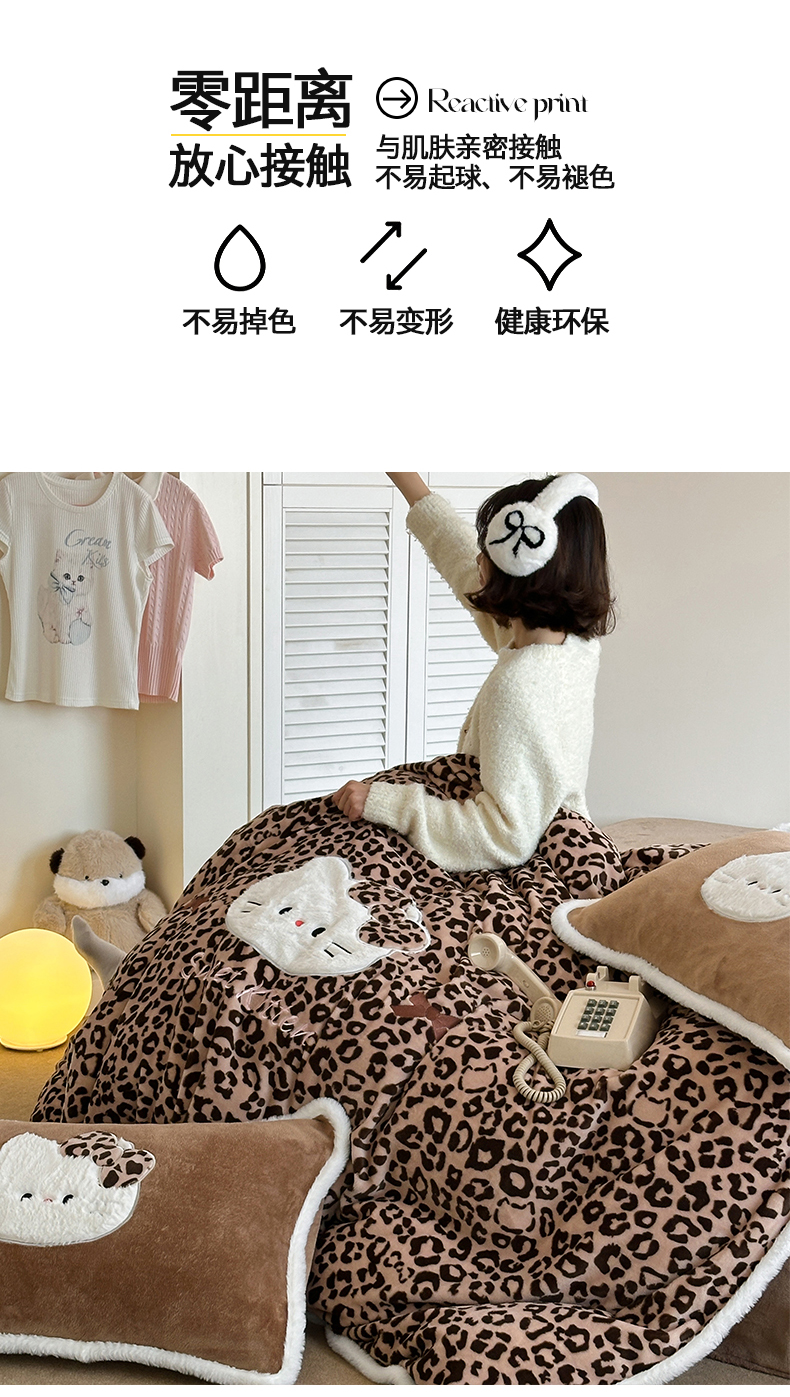 当前位置: 91家纺网 > 商品网购 > 床品套件 > 四件套 > 牛奶绒四件套 > 桃子家居 2026新款A类新年限定兔毛贴布绣猫咪可爱公主兔毛包边工艺款加厚牛奶绒四件套 绒贴布绣-豹纹喵喵咖