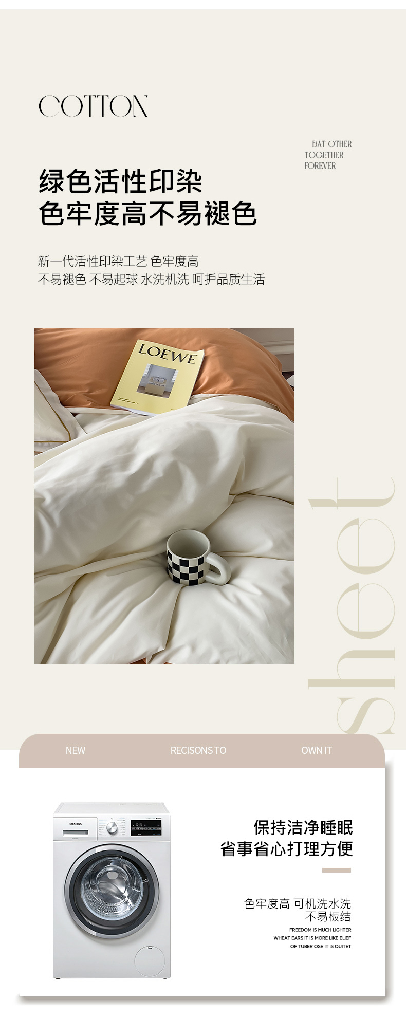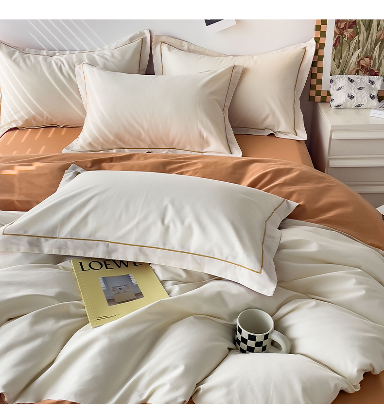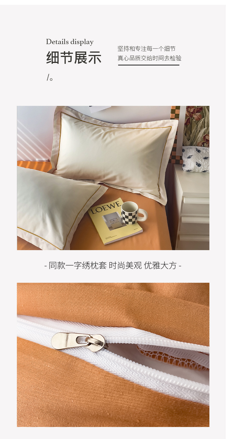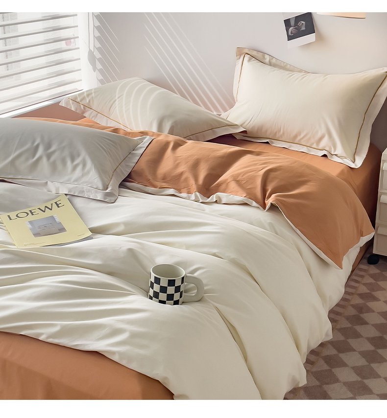 当前位置: 91家纺网 > 商品网购 > 床品套件 > 四件套 > 全棉普通四件套 > 锦彩家居 2026新款40支正宗13372双拼纯色全棉四件套酒店宾馆民宿学生三件套(可定制)标准号的床单是圆角吊边;小号和加大的床单都是直角 奶昔白-南瓜橘