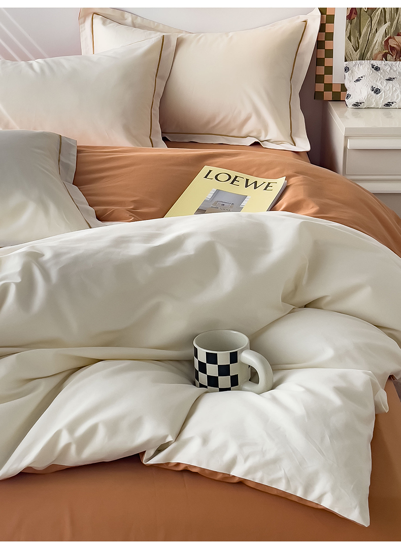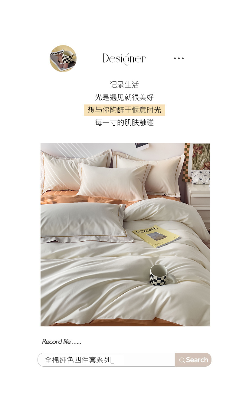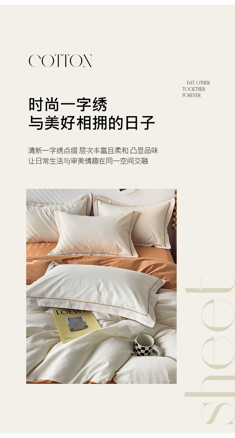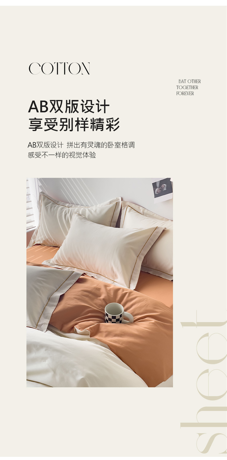 当前位置: 91家纺网 > 商品网购 > 床品套件 > 四件套 > 全棉普通四件套 > 锦彩家居 2026新款40支正宗13372双拼纯色全棉四件套酒店宾馆民宿学生三件套(可定制)标准号的床单是圆角吊边;小号和加大的床单都是直角 奶昔白-南瓜橘