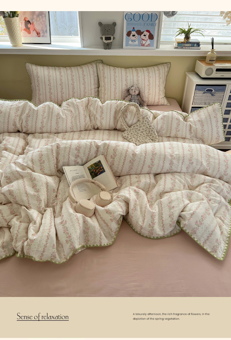 商品名称:典曼家纺 2026新款全棉纯棉有氧双层纱贝壳边四件套 贝壳边亭亭玉立
