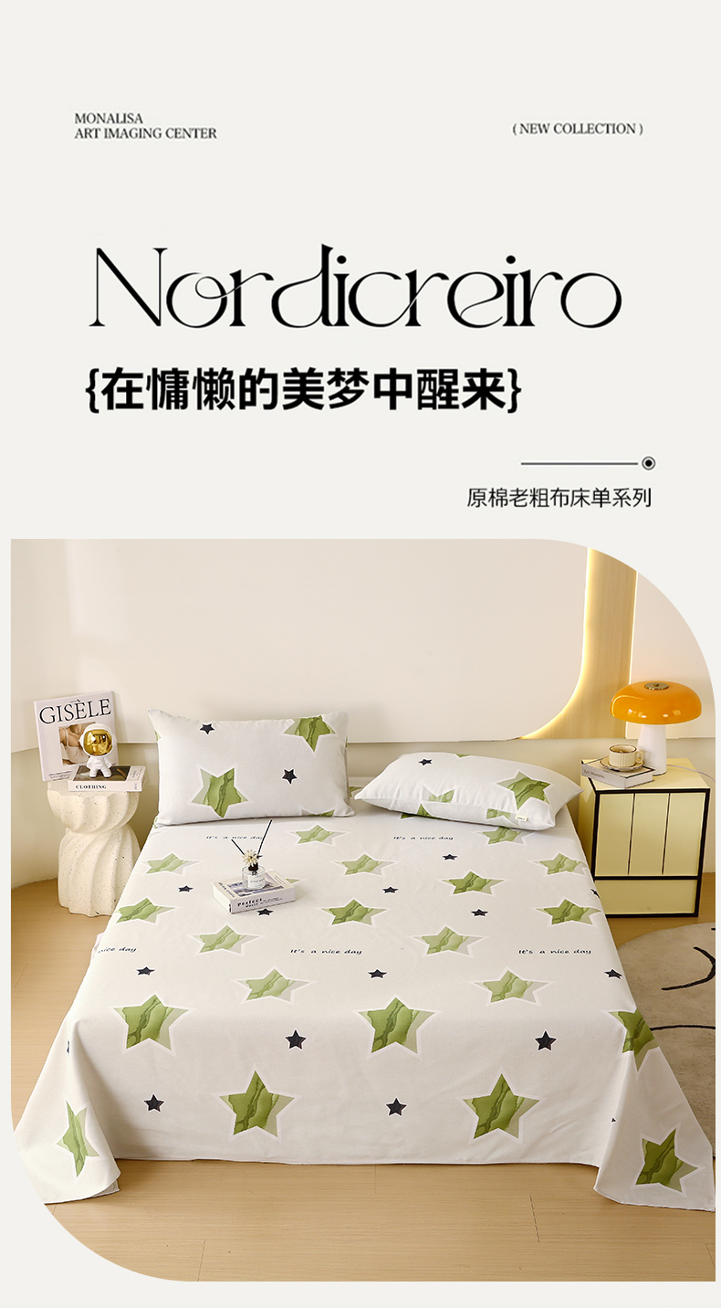• 91家纺网 家纺一手货源 找家纺 爱彼家纺 2026新款古艺印花小碎花老粗布床单-粗纱系列二 星绿
