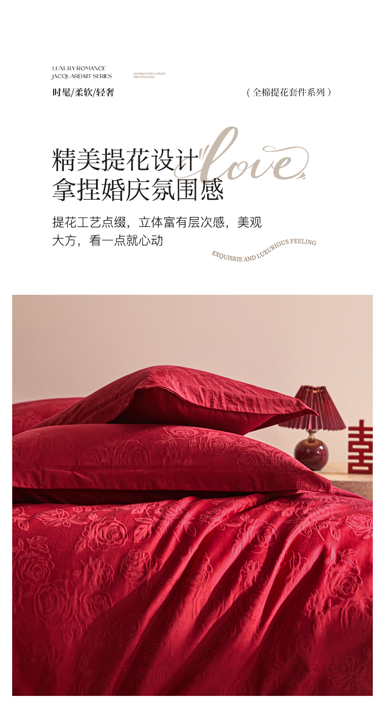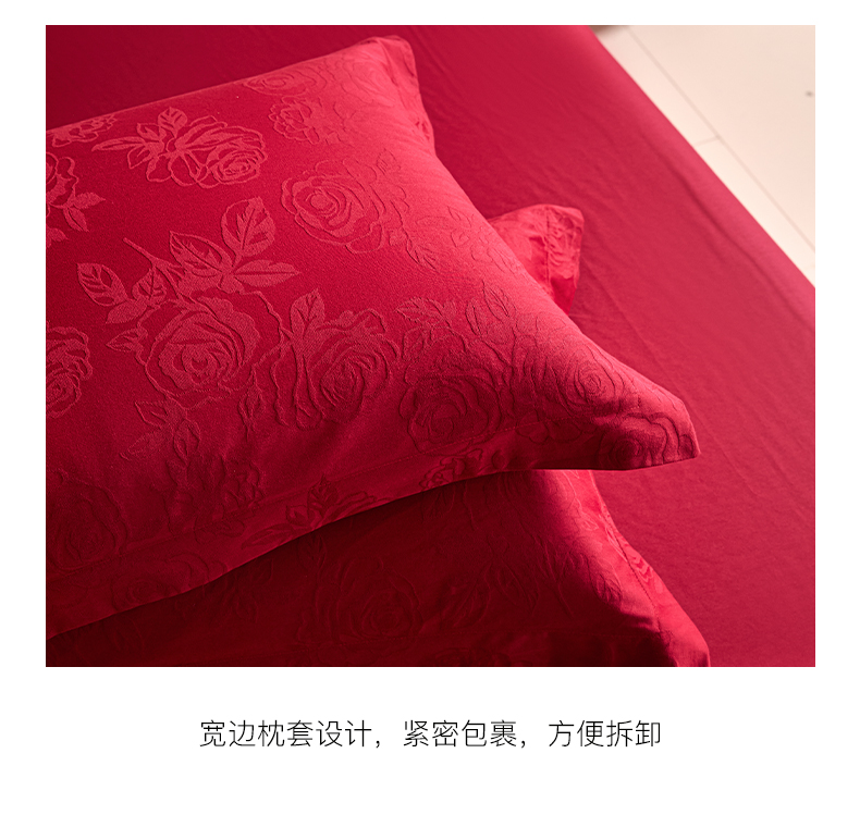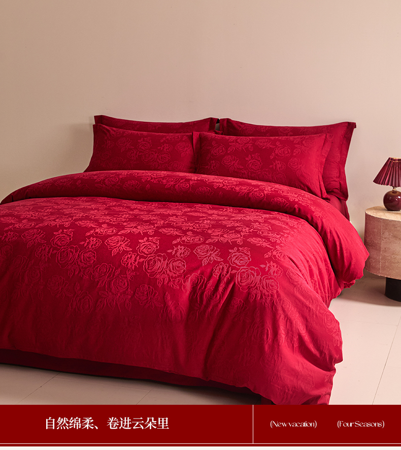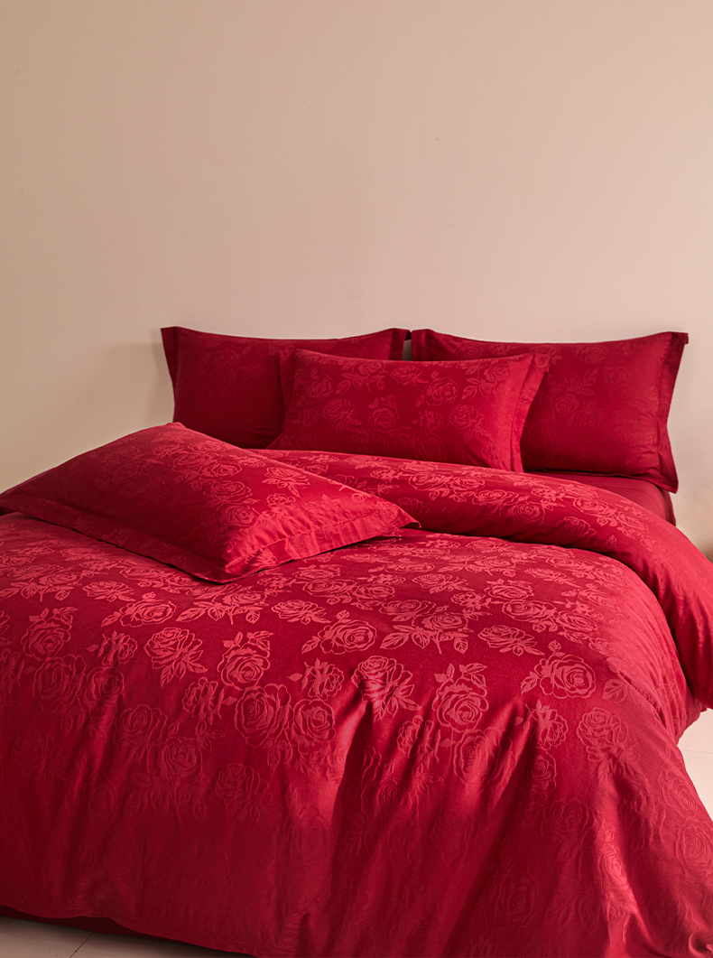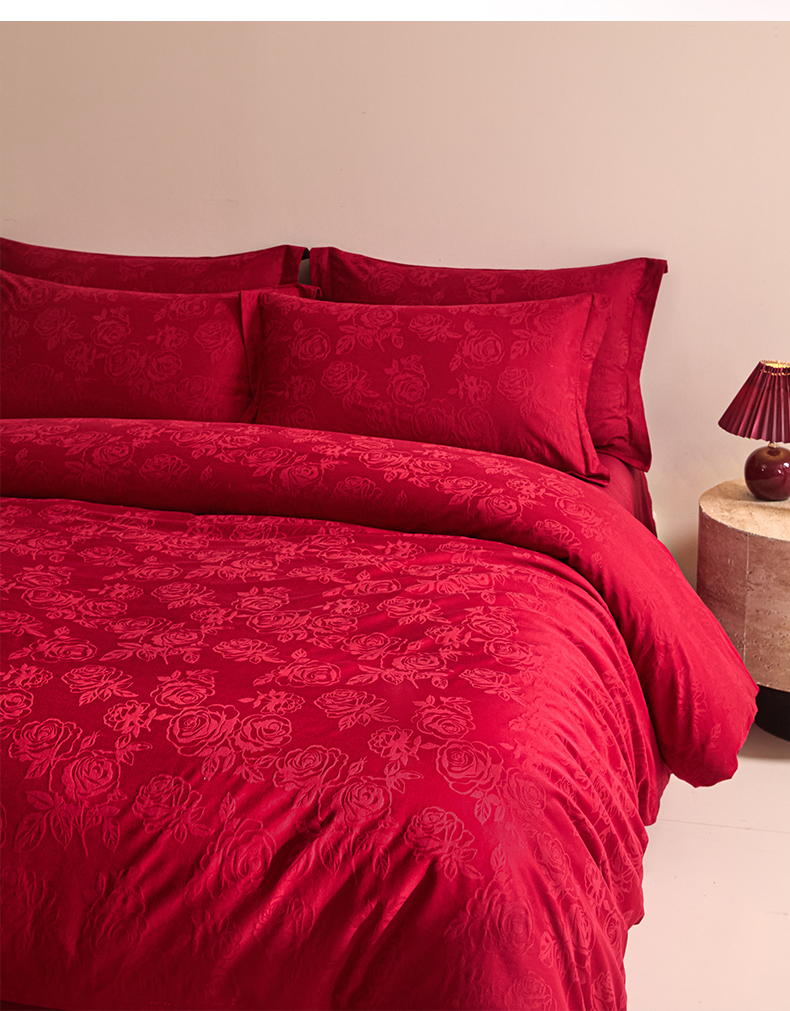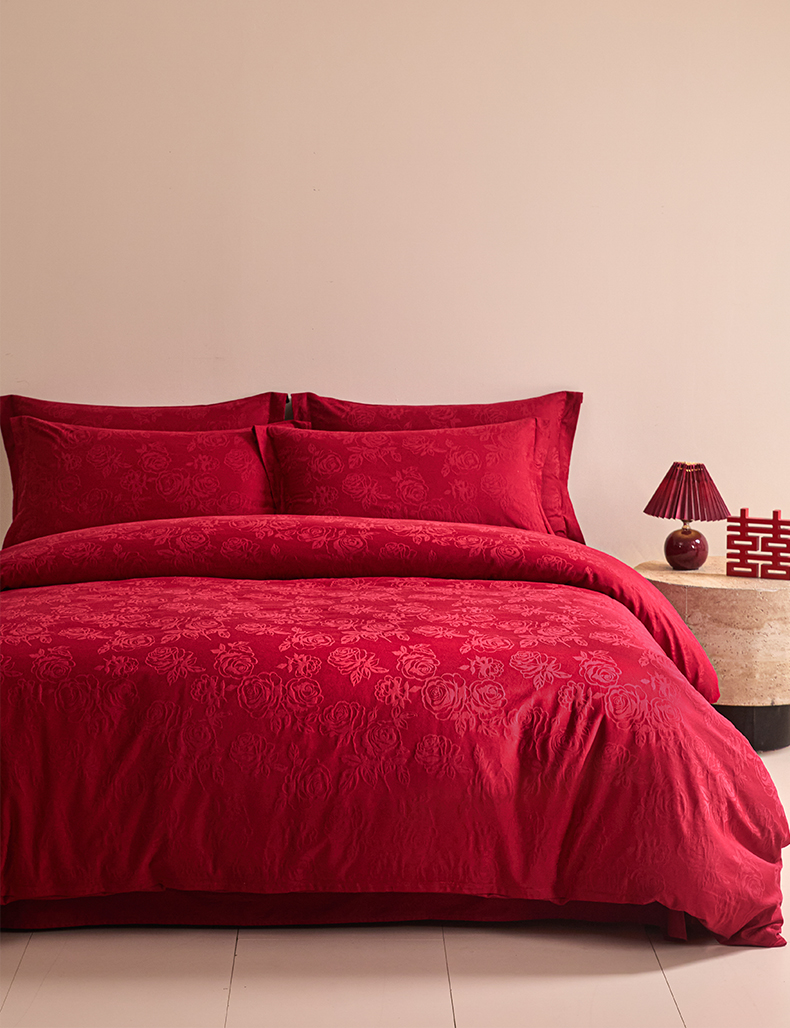 当前位置: 91家纺网 > 商品网购 > 床品套件 > 四件套 > 婚庆四件套 > 格里芬家纺 2026新款全棉水洗立体浮雕提花大红婚庆四件套 玫瑰之恋-大红