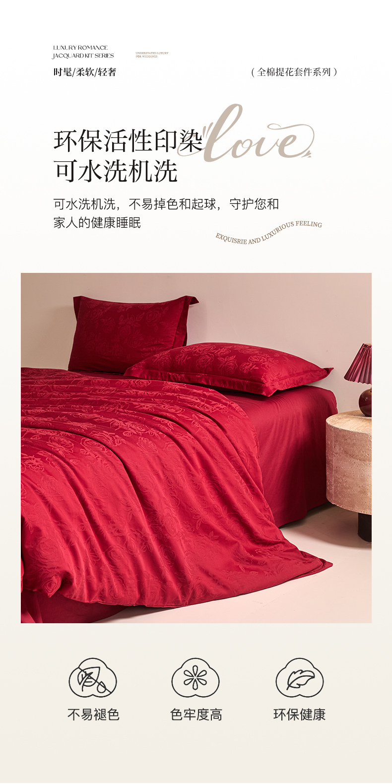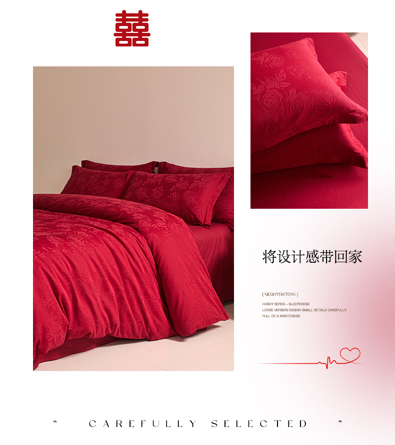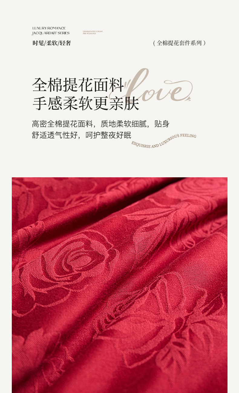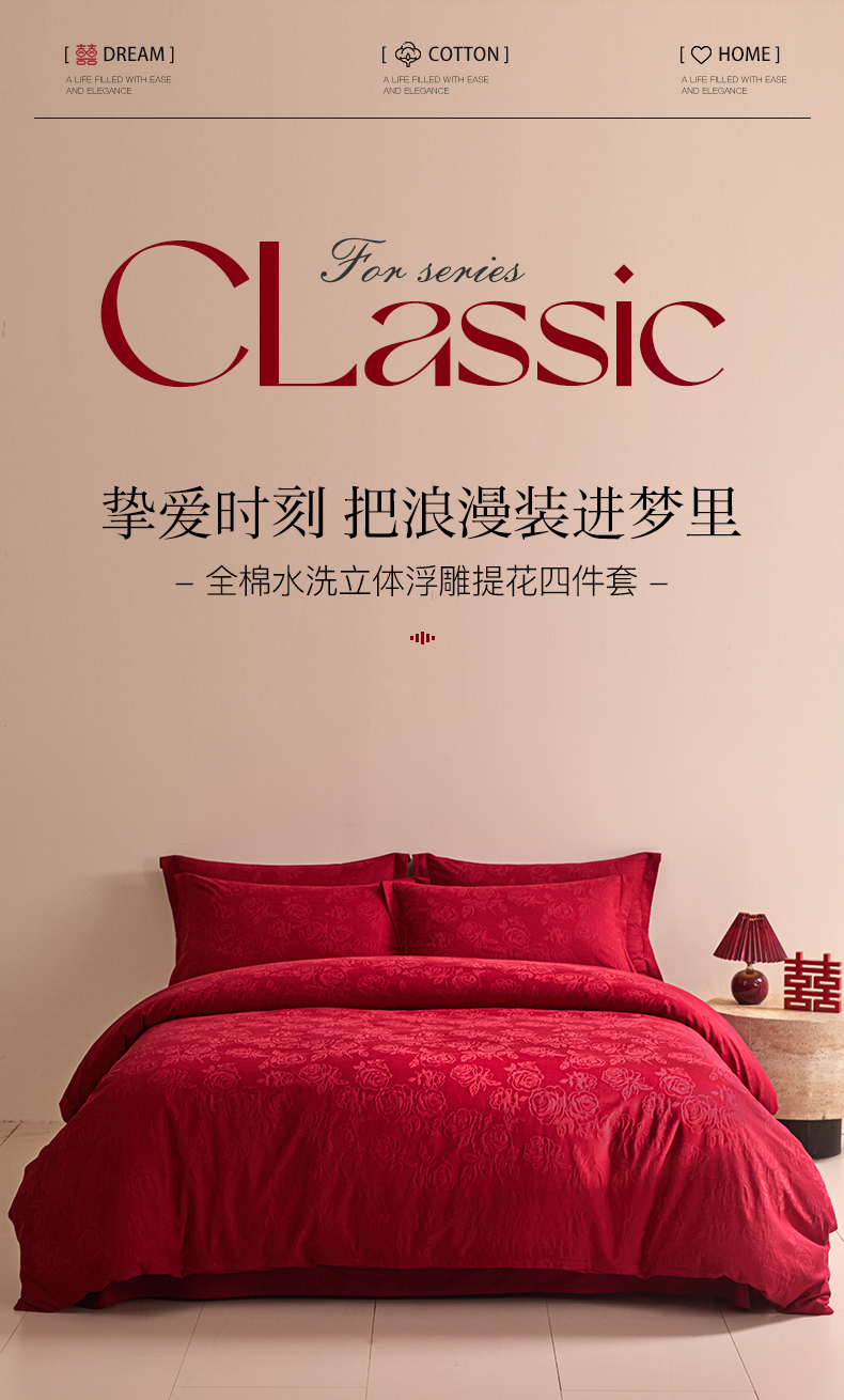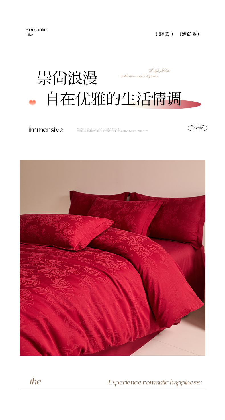 当前位置: 91家纺网 > 商品网购 > 床品套件 > 四件套 > 婚庆四件套 > 格里芬家纺 2026新款全棉水洗立体浮雕提花大红婚庆四件套 玫瑰之恋-大红