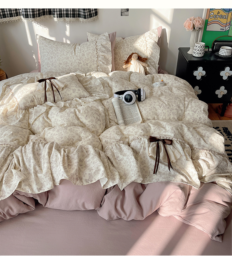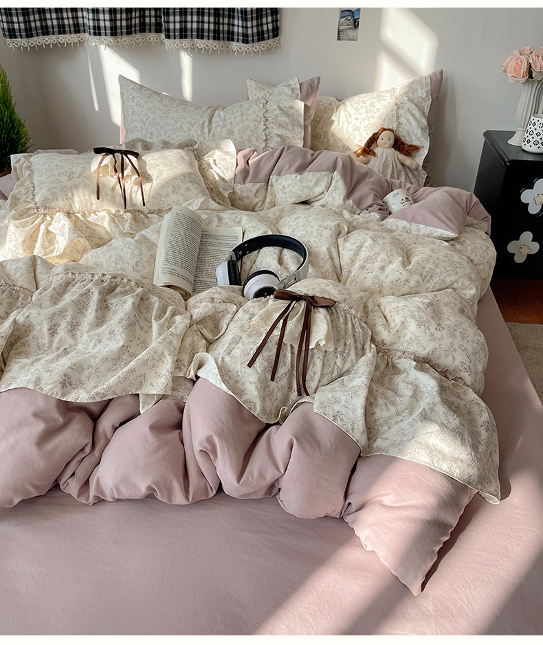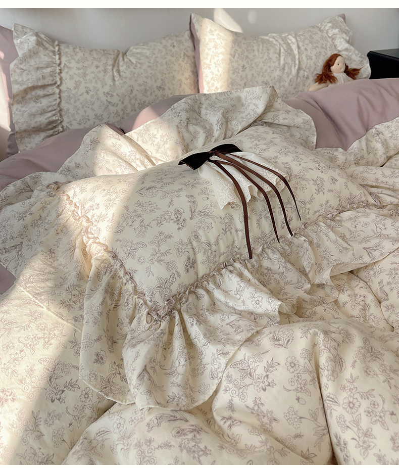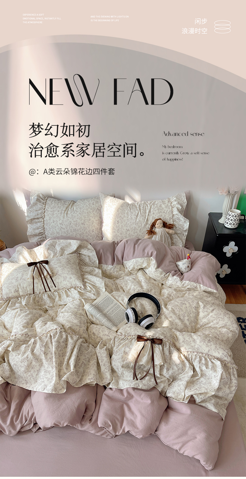 当前位置: 91家纺网 > 商品网购 > 床品套件 > 四件套 > 其它四件套 > 娜娜 2026新款A类云朵锦花边四件套 满天星-豆沙