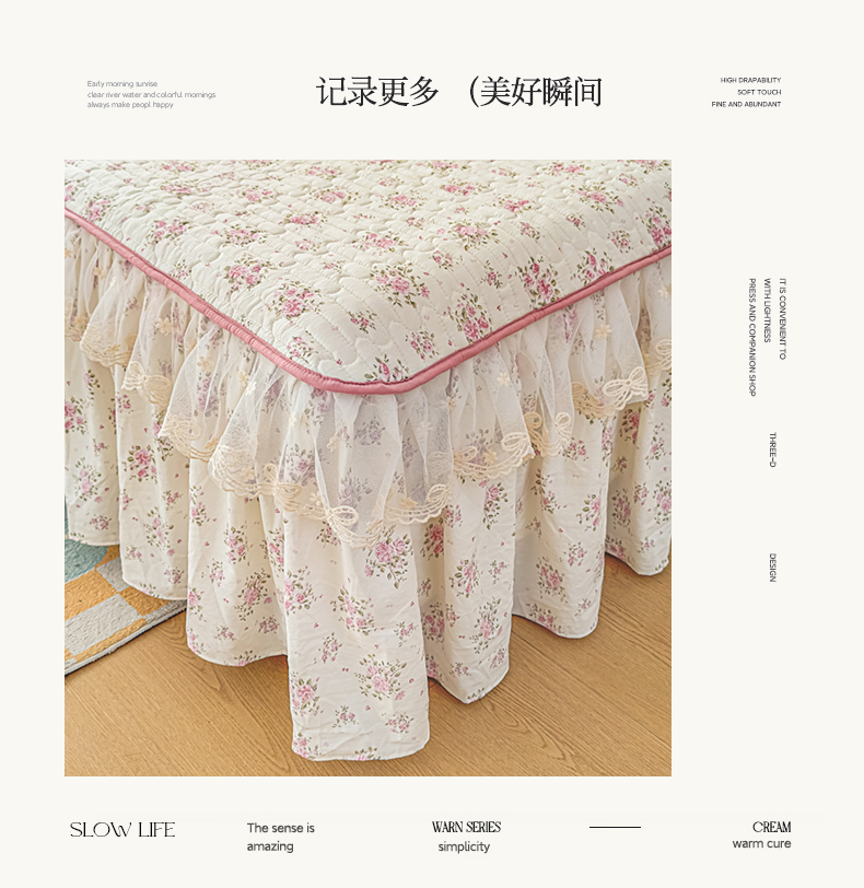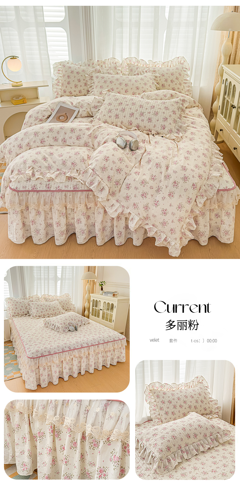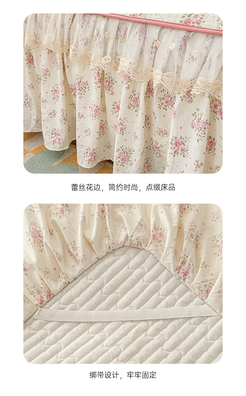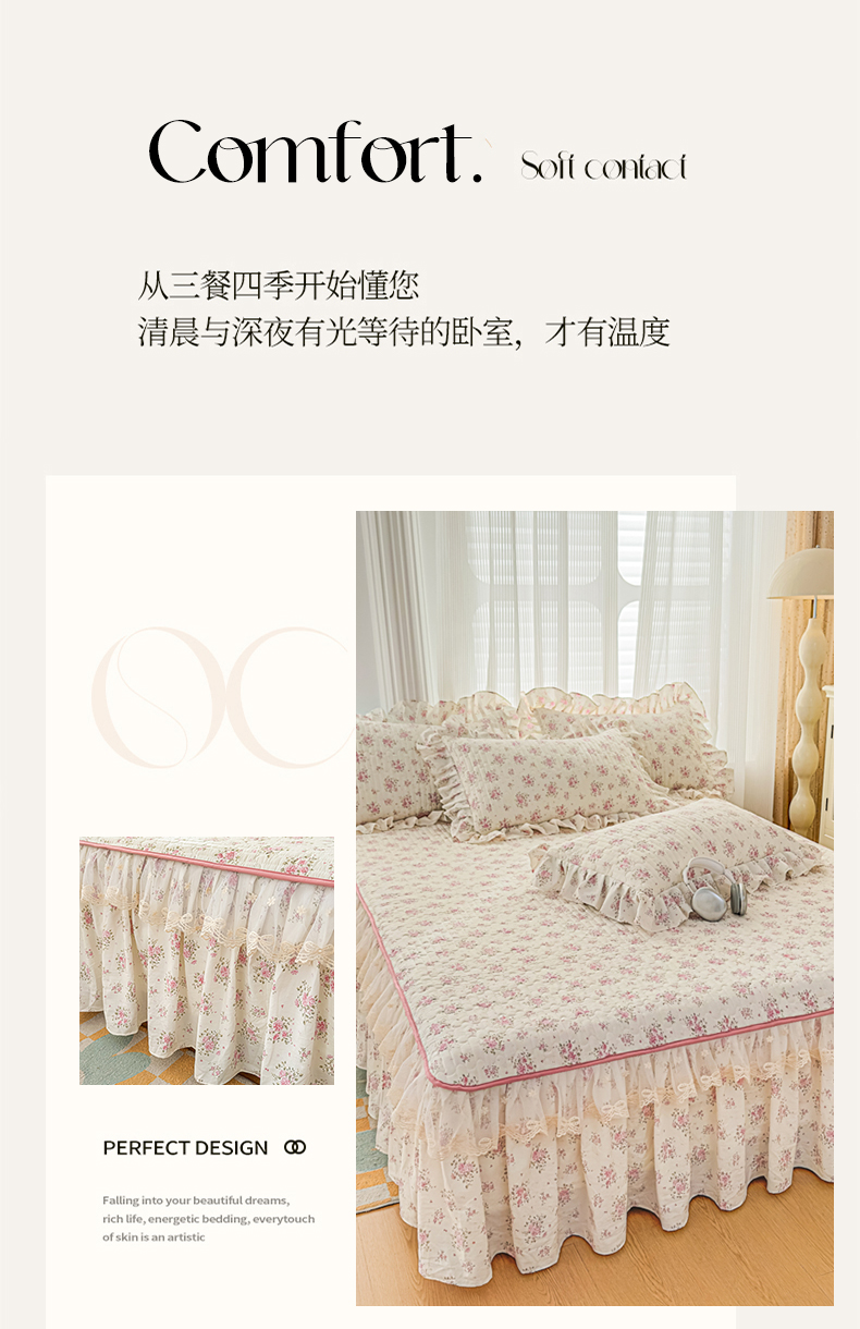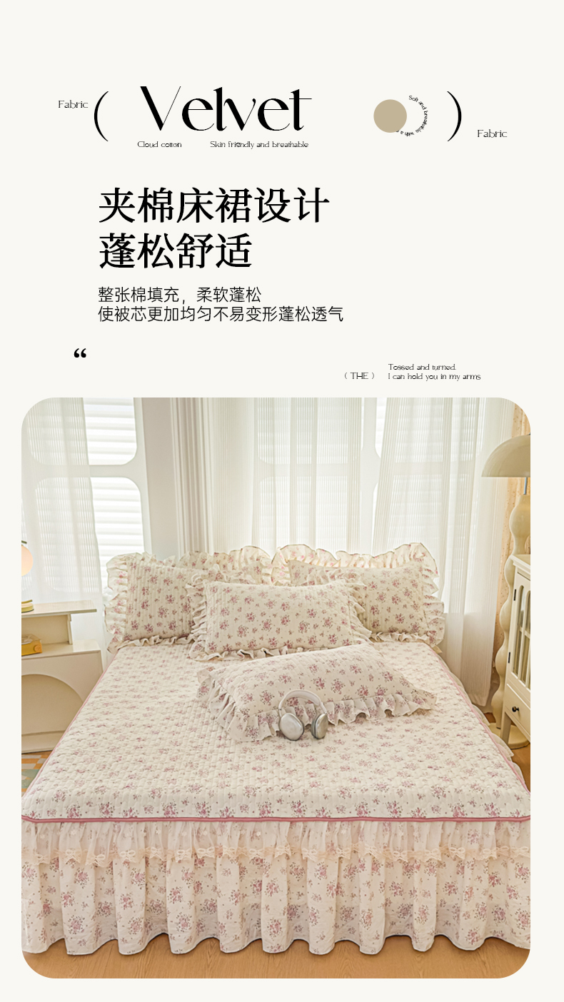 当前位置: 91家纺网 > 商品网购 > 床品套件 > 三件套 > 家之硕家纺 2026新款精仿棉夹棉床裙三件套 多丽粉