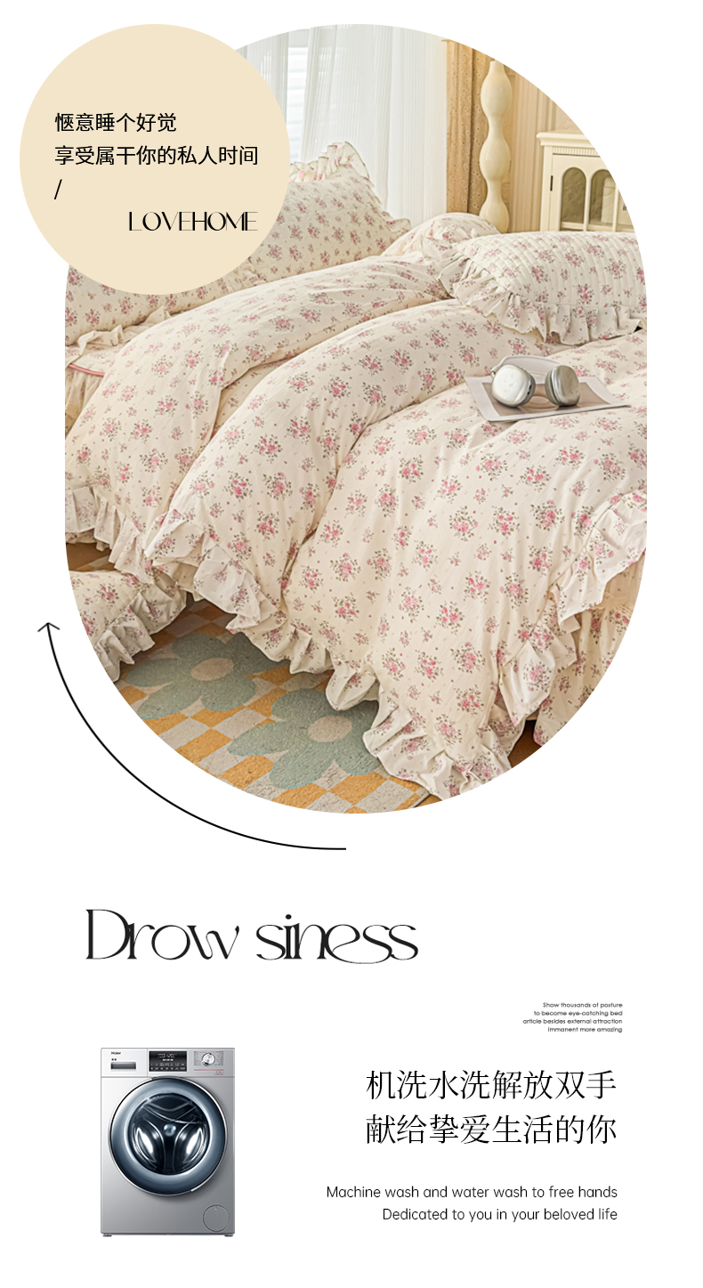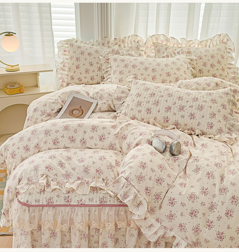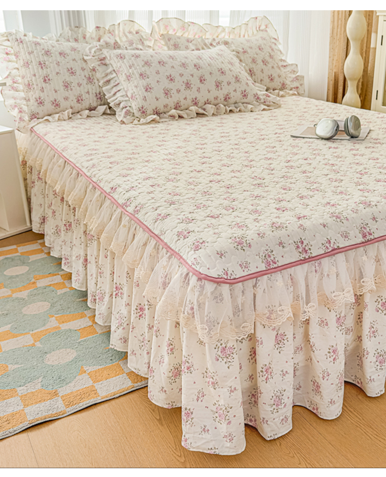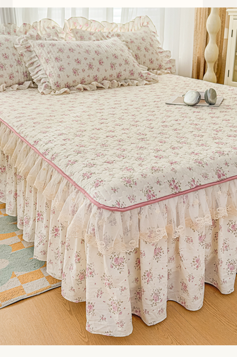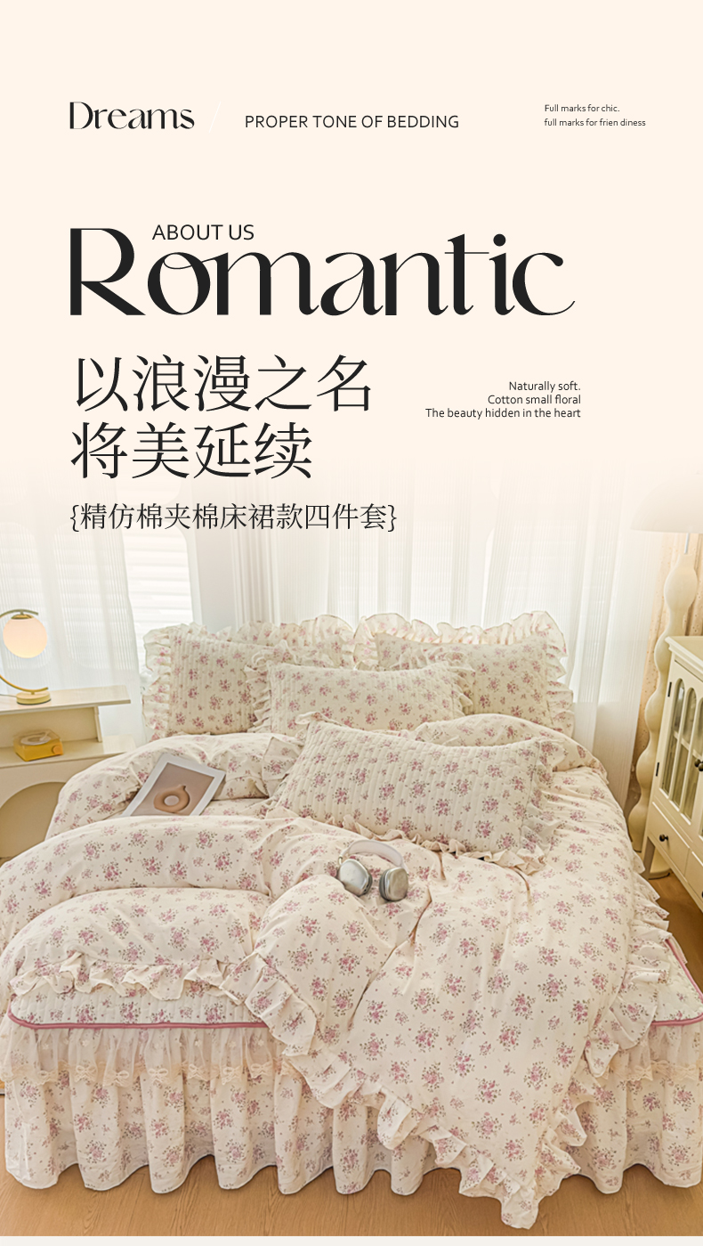 当前位置: 91家纺网 > 商品网购 > 床品套件 > 三件套 > 家之硕家纺 2026新款精仿棉夹棉床裙三件套 多丽粉