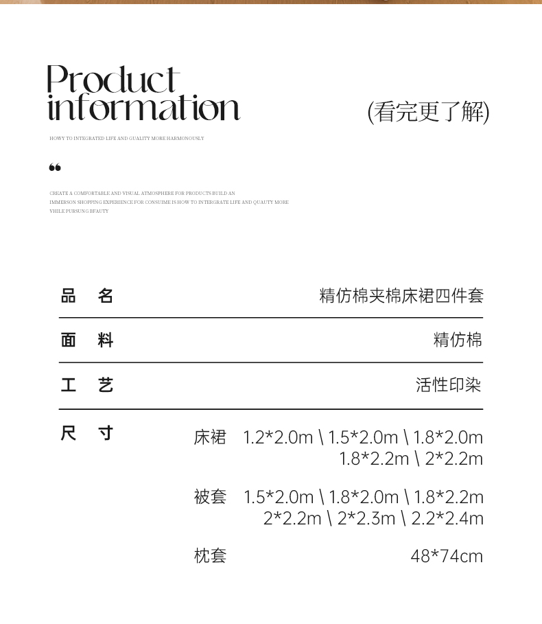 当前位置: 91家纺网 > 商品网购 > 床品套件 > 四件套 > 其它四件套 > 家之硕家纺 2026新款精仿棉夹棉床裙四件套 花恋