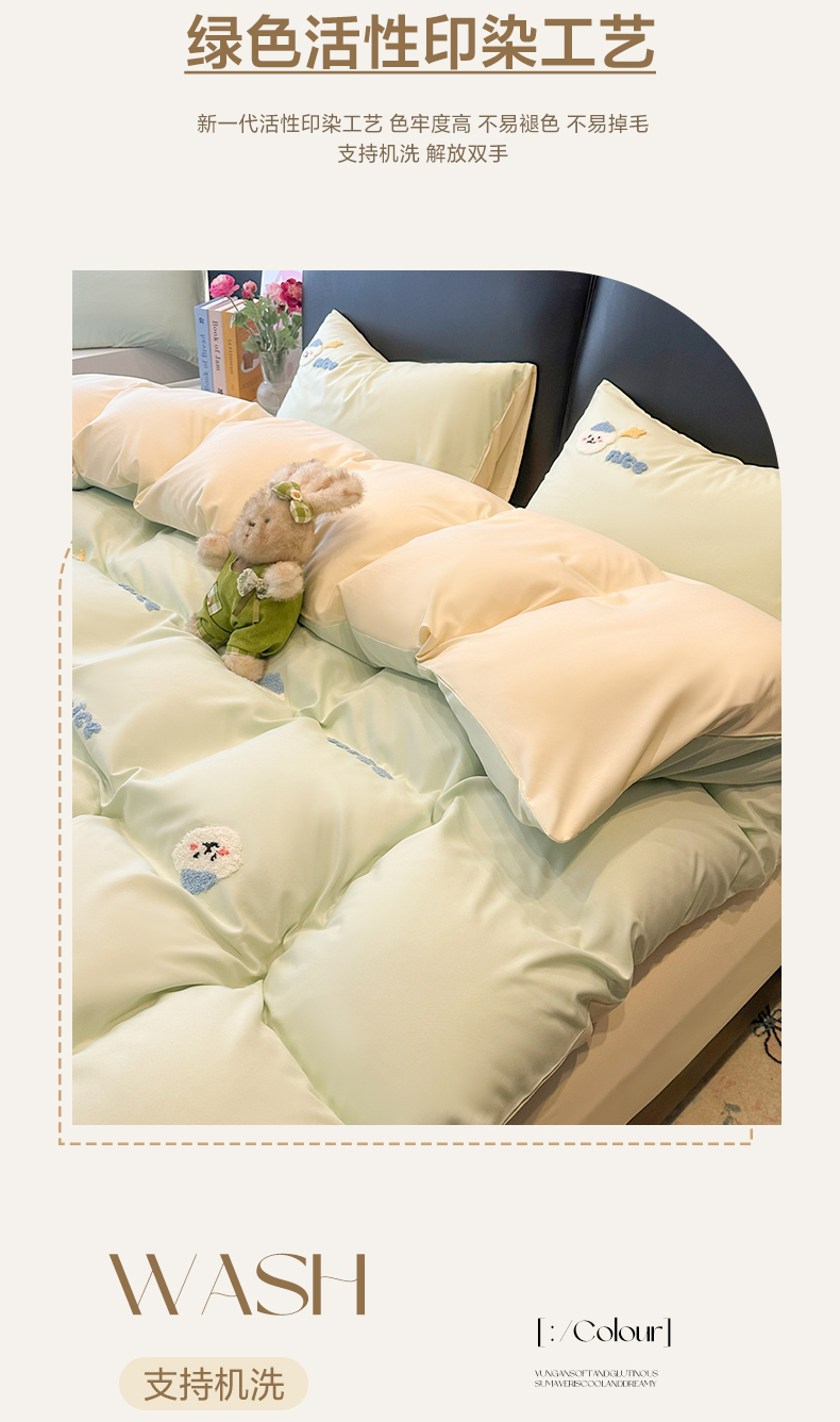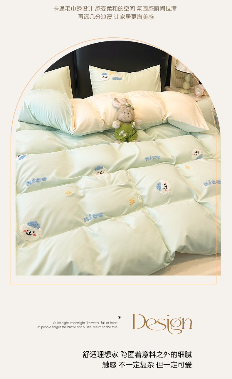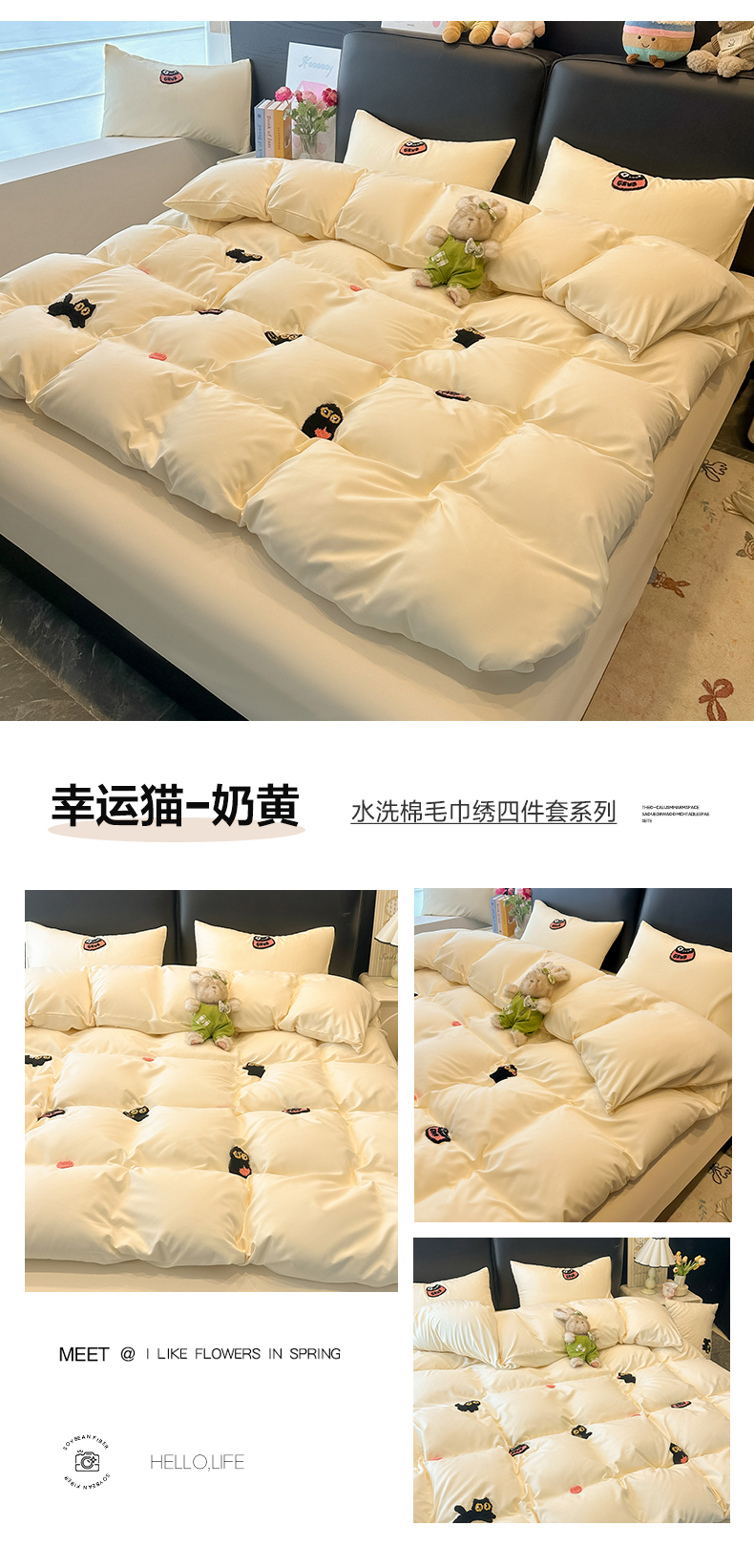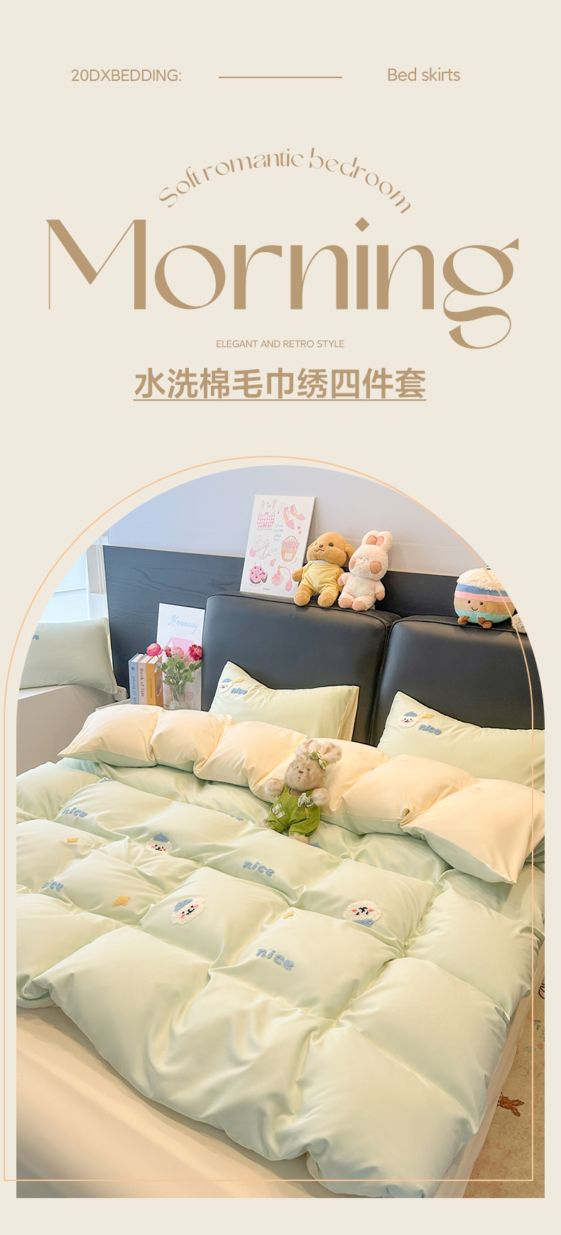 当前位置: 91家纺网 > 商品网购 > 床品套件 > 四件套 > 水洗棉四件套 > 韩巢家纺 2026新款水洗棉毛巾绣四件套 哈哈狗-浅绿黄