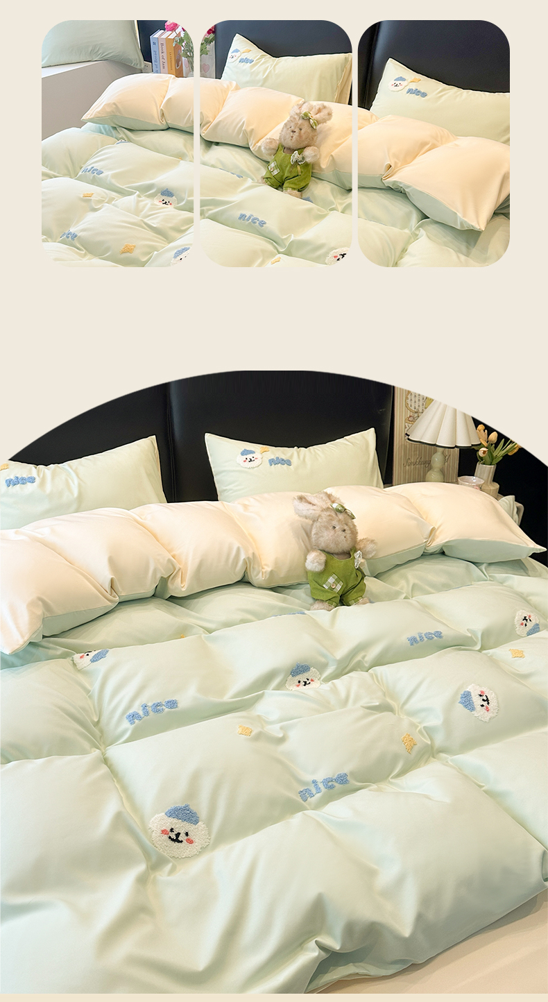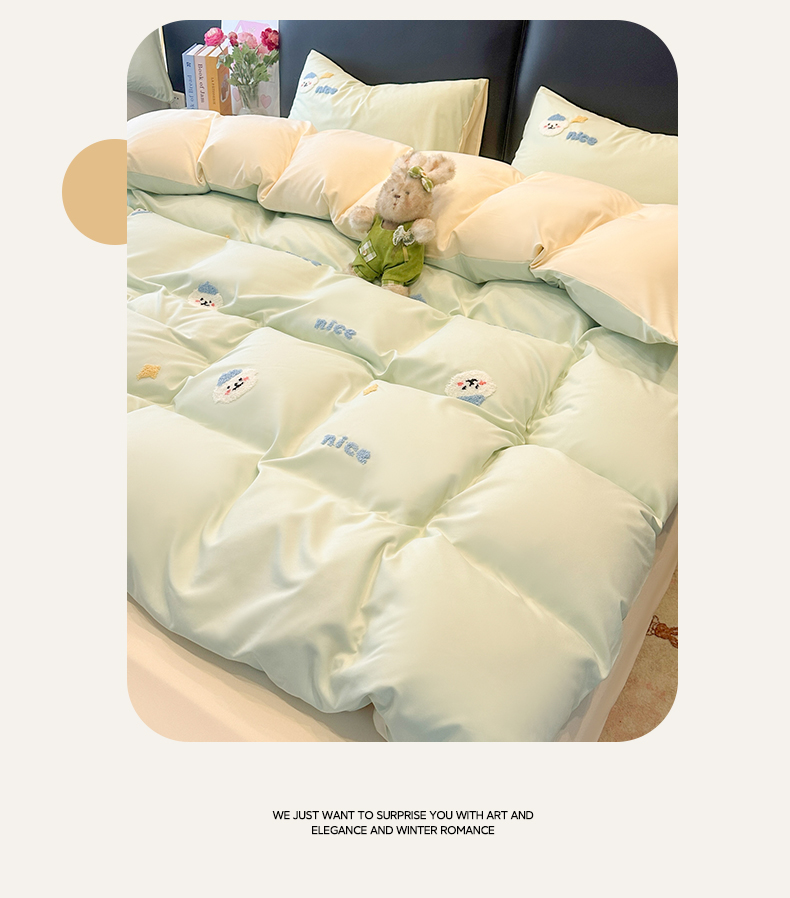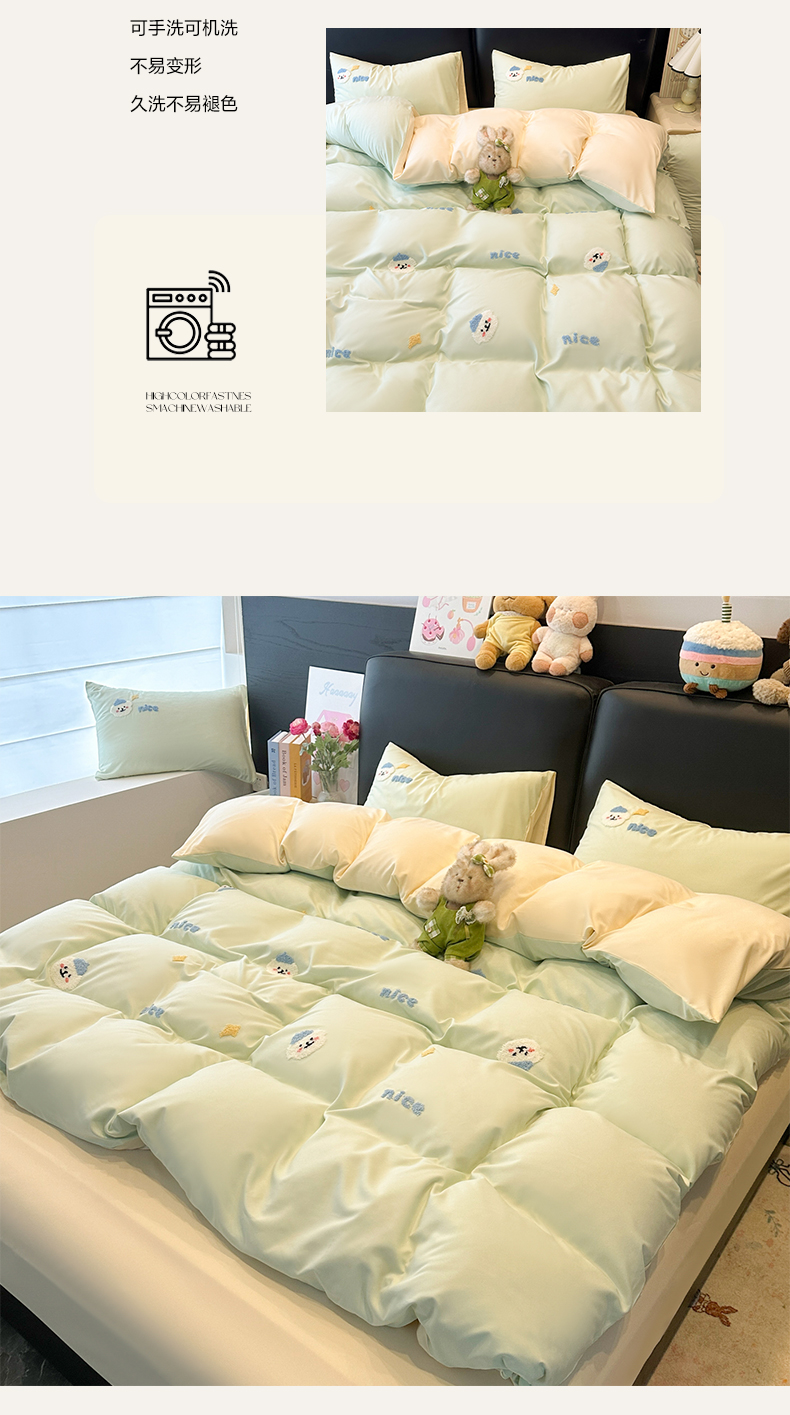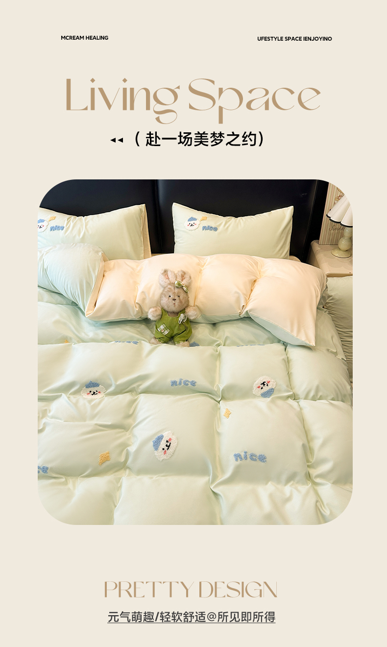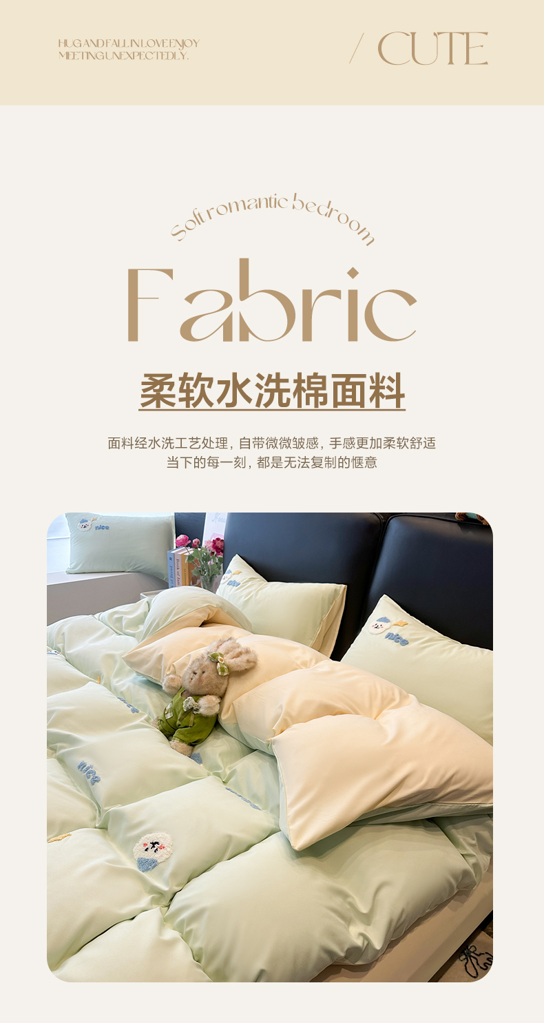当前位置: 91家纺网 > 商品网购 > 床品套件 > 四件套 > 水洗棉四件套 > 韩巢家纺 2026新款水洗棉毛巾绣四件套 哈哈狗-浅绿黄