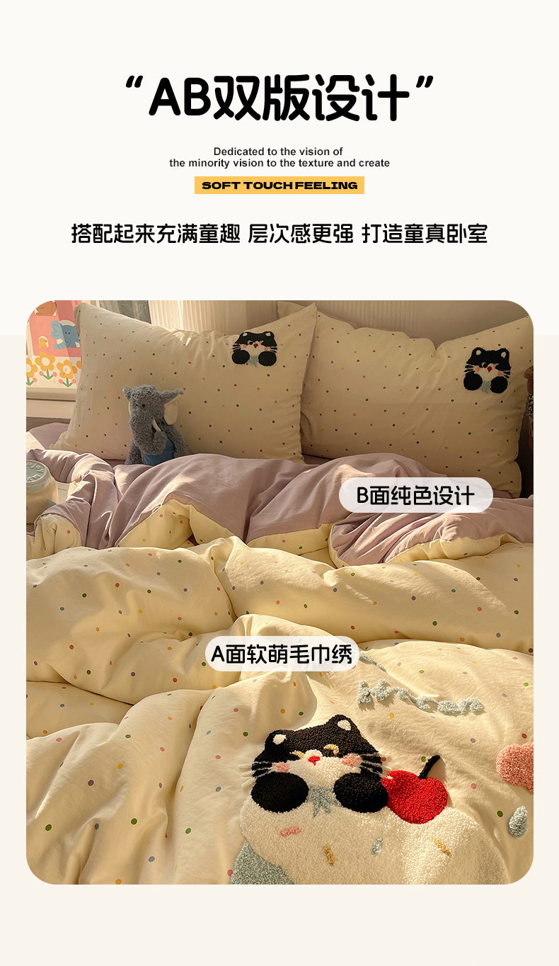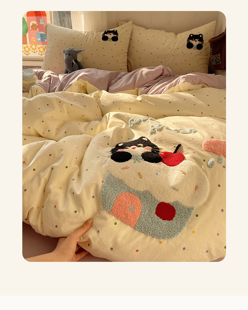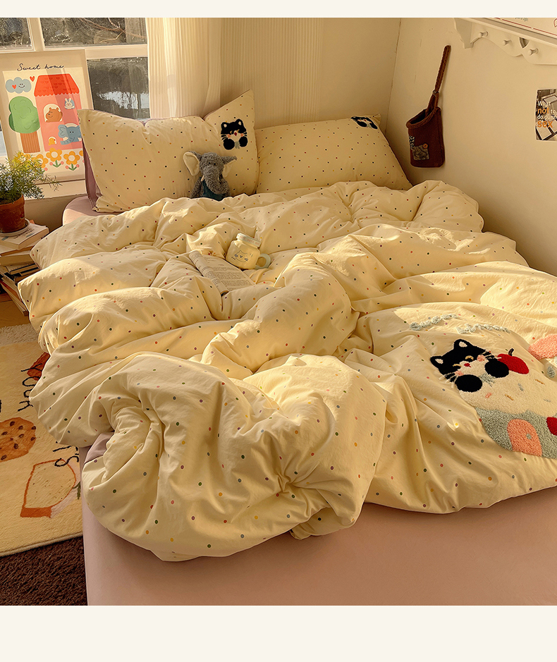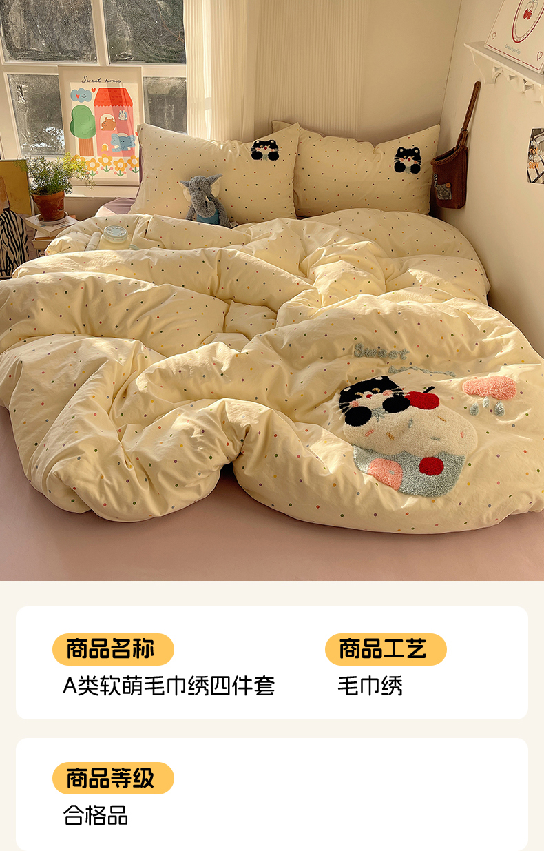 当前位置: 91家纺网 > 商品网购 > 床品套件 > 四件套 > 水洗棉四件套 > 沐芷 2026 【提供买家秀】水洗棉四件套毛巾绣A类仿棉床上用品床单被套三件套可爱小清新 毛巾绣-猫咪小窝
