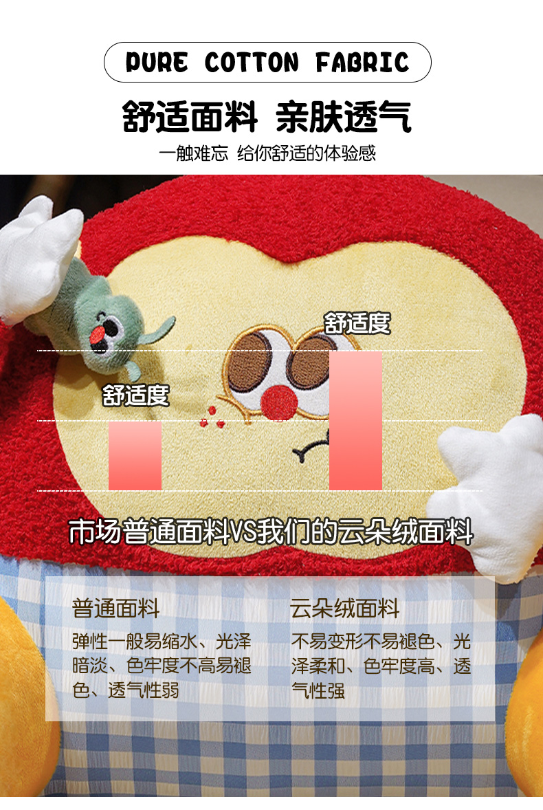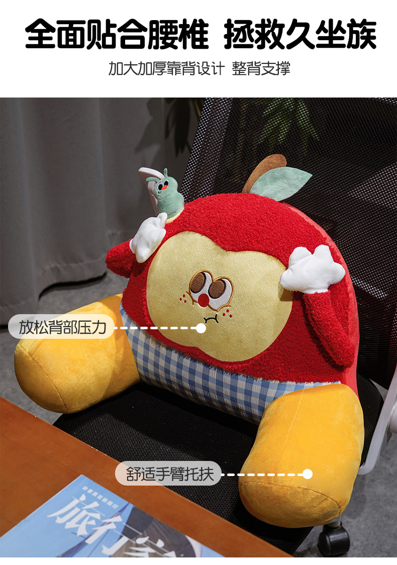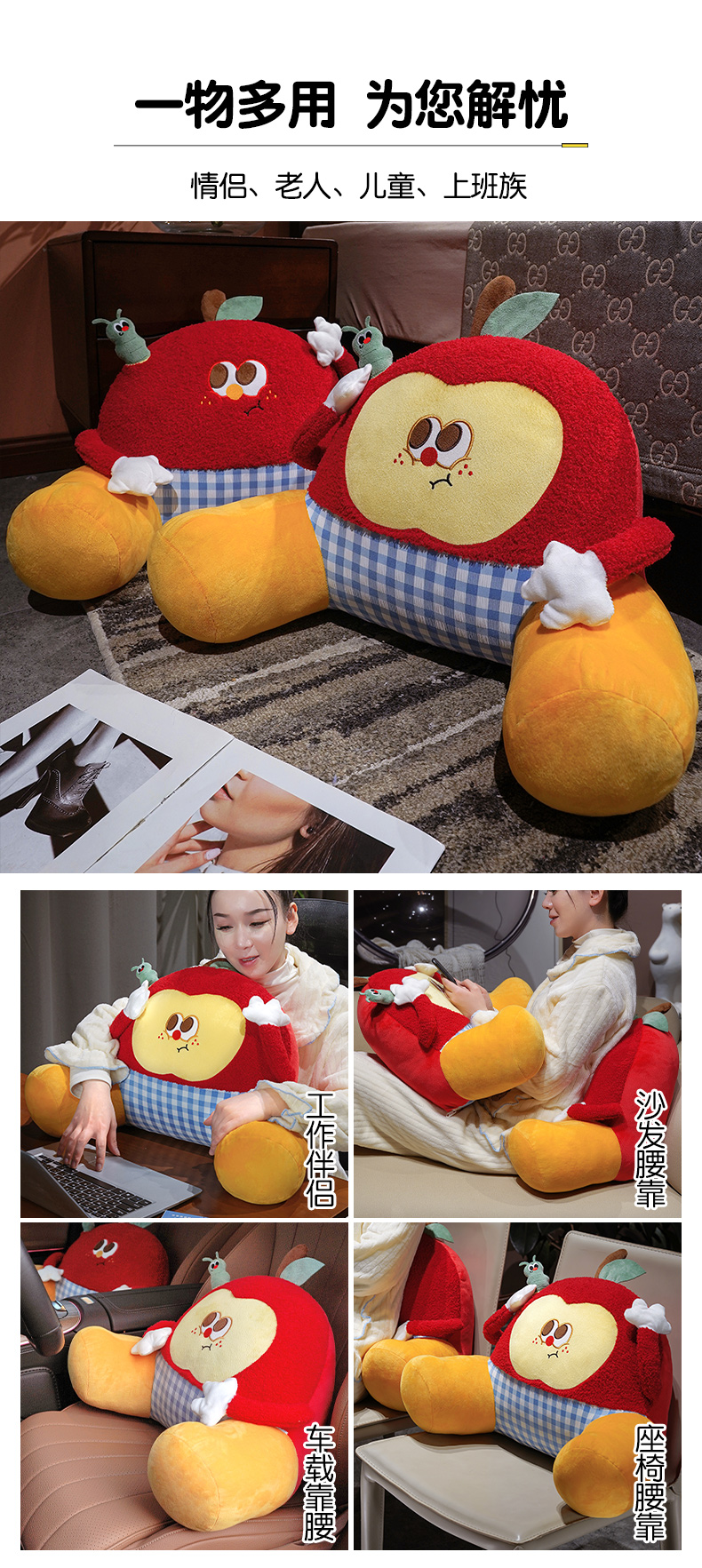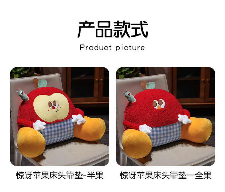 商品名称:仟亿莱 2026新款惊讶苹果小虫大脚床头靠垫 拥抱惊讶半果