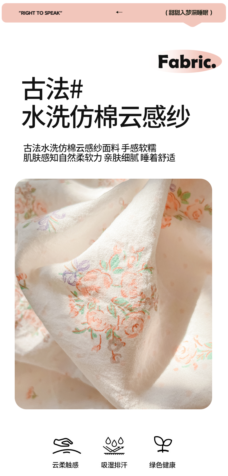 当前位置: 91家纺网 > 商品网购 > 床品套件 > 四件套 > 水洗棉四件套 > 云玲时尚 2026新款古法水洗仿棉云感纱四件套 旋转木马