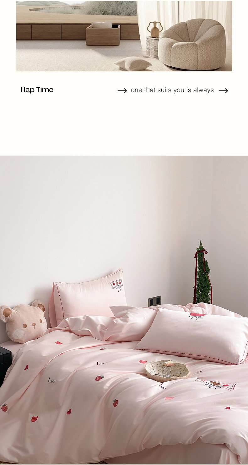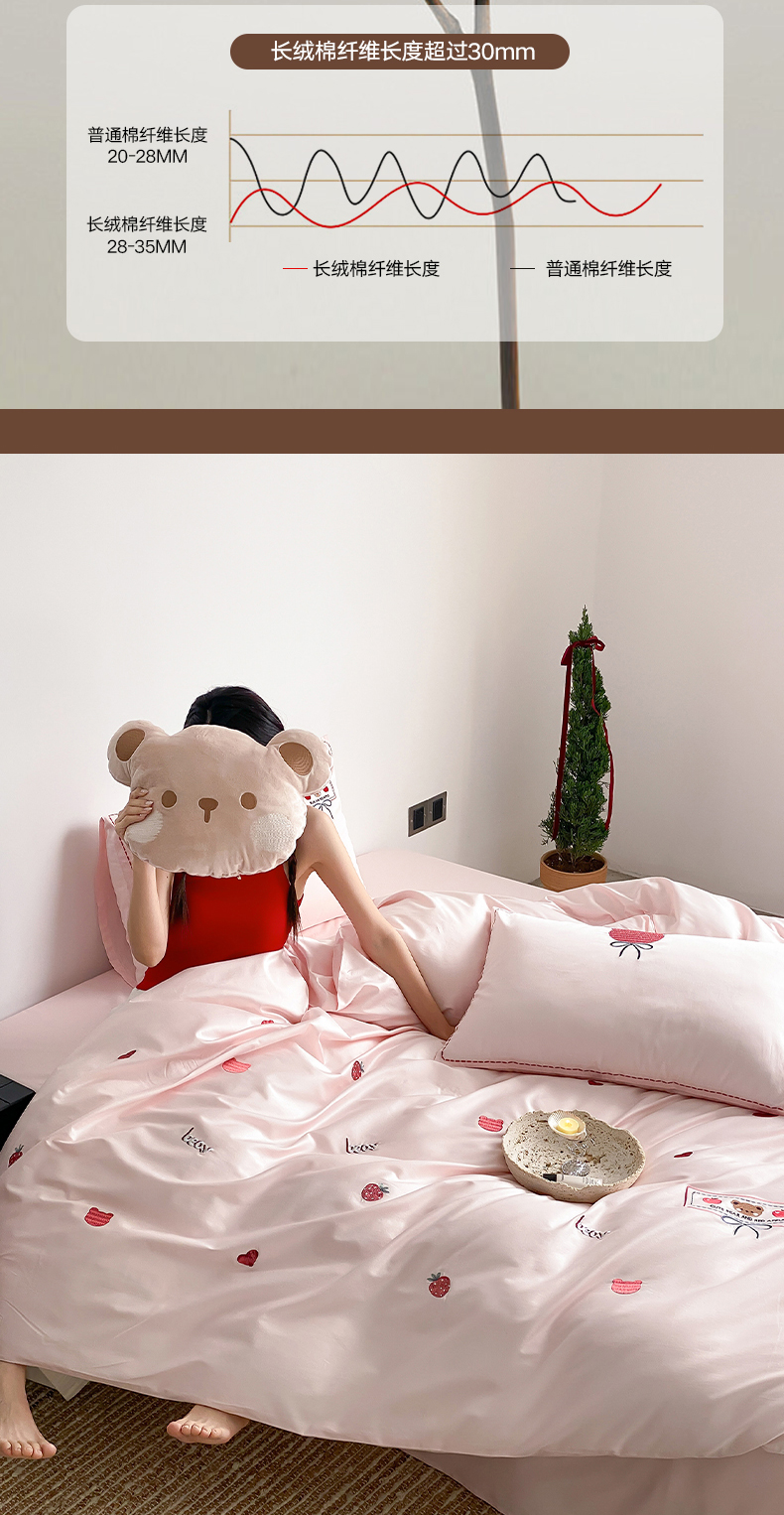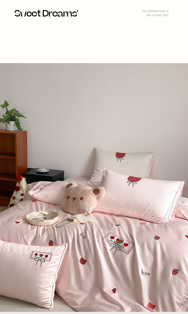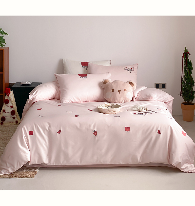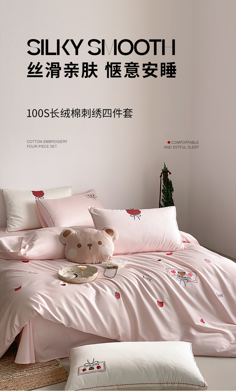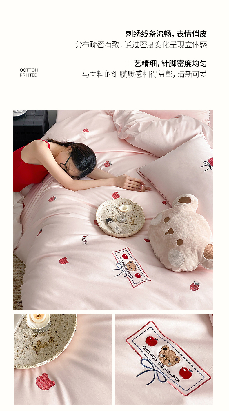 当前位置: 91家纺网 > 商品网购 > 床品套件 > 四件套 > 长绒棉四件套 > 极简 2026新款100s长绒棉刺绣四件套-甜莓小熊 甜莓小熊-粉