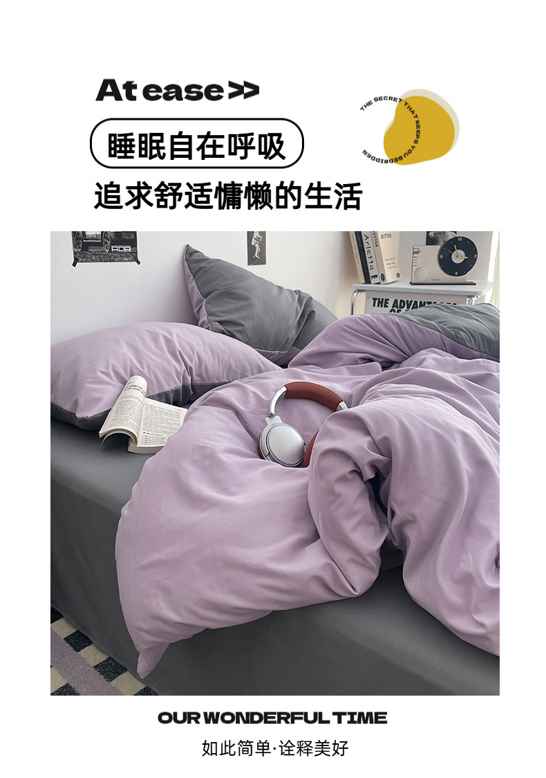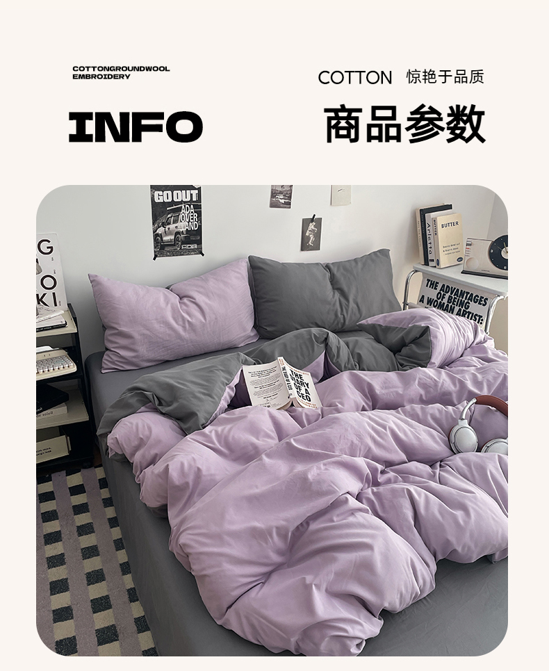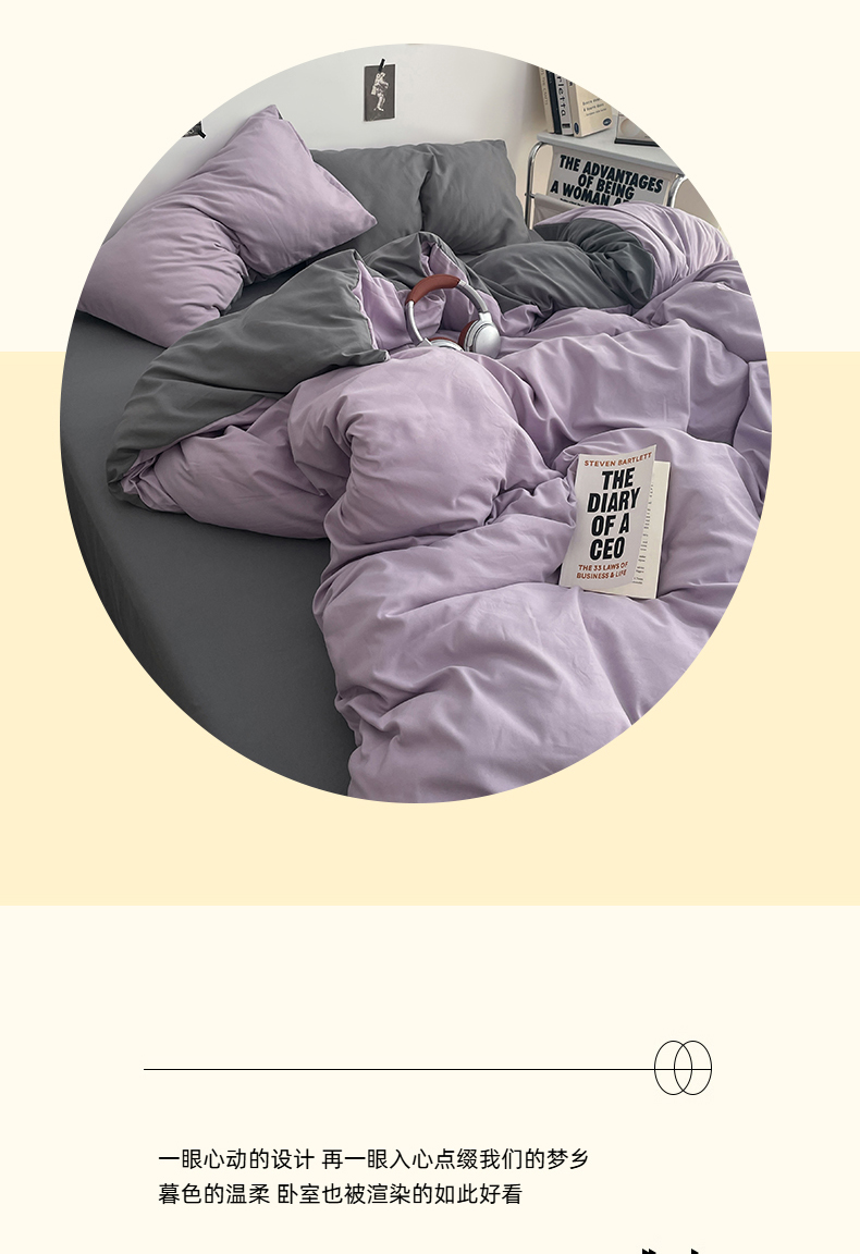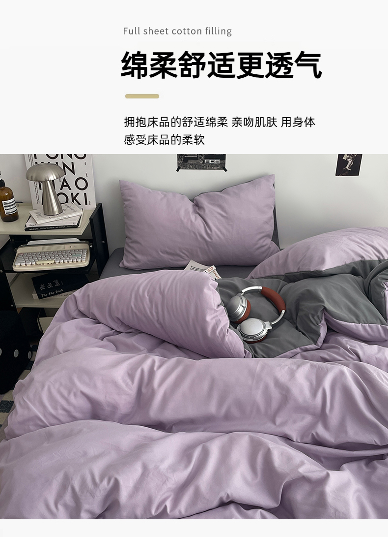 • 91家纺网 家纺一手货源 找家纺 贝拉梦家纺 2026新款无印风高克重加厚云感棉三件套四件套单被套系列 雾紫深眠