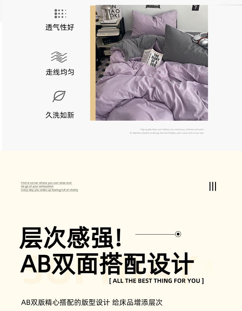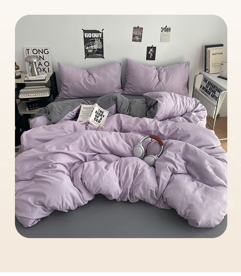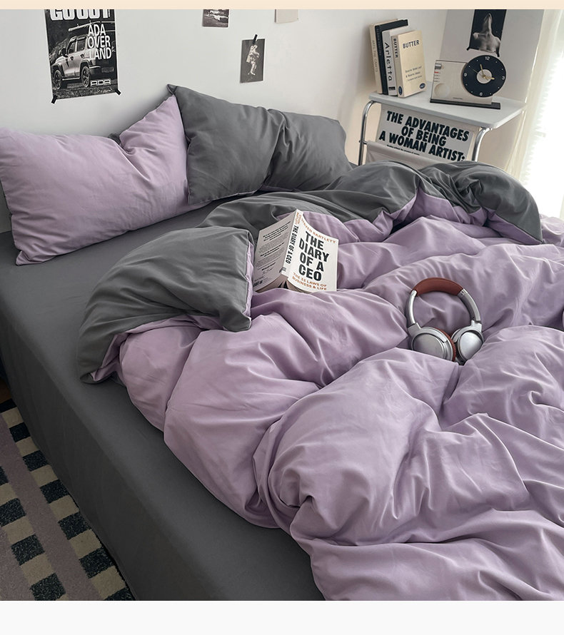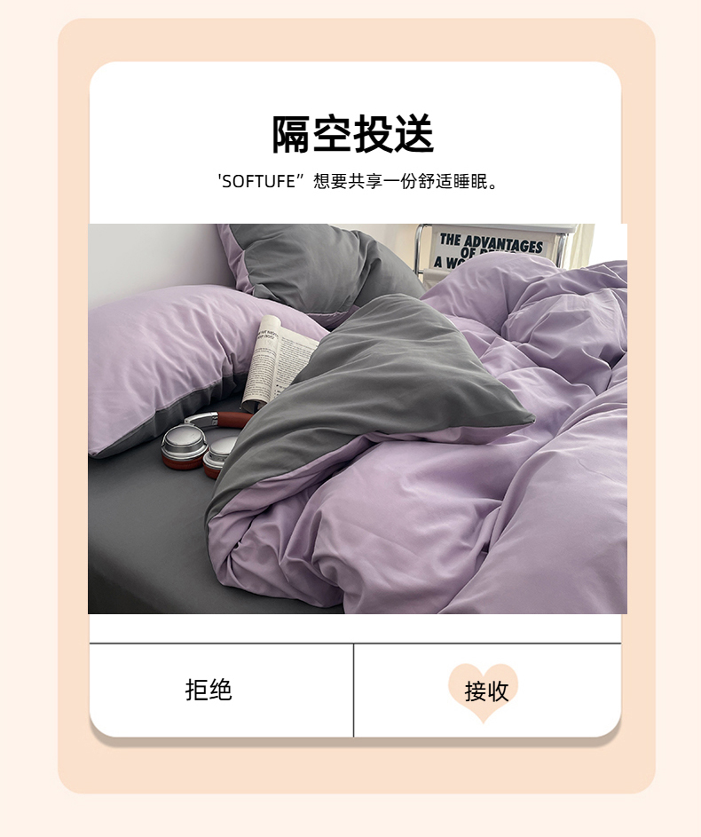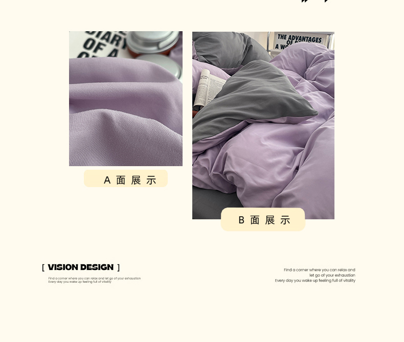 • 91家纺网 家纺一手货源 找家纺 贝拉梦家纺 2026新款无印风高克重加厚云感棉三件套四件套单被套系列 雾紫深眠