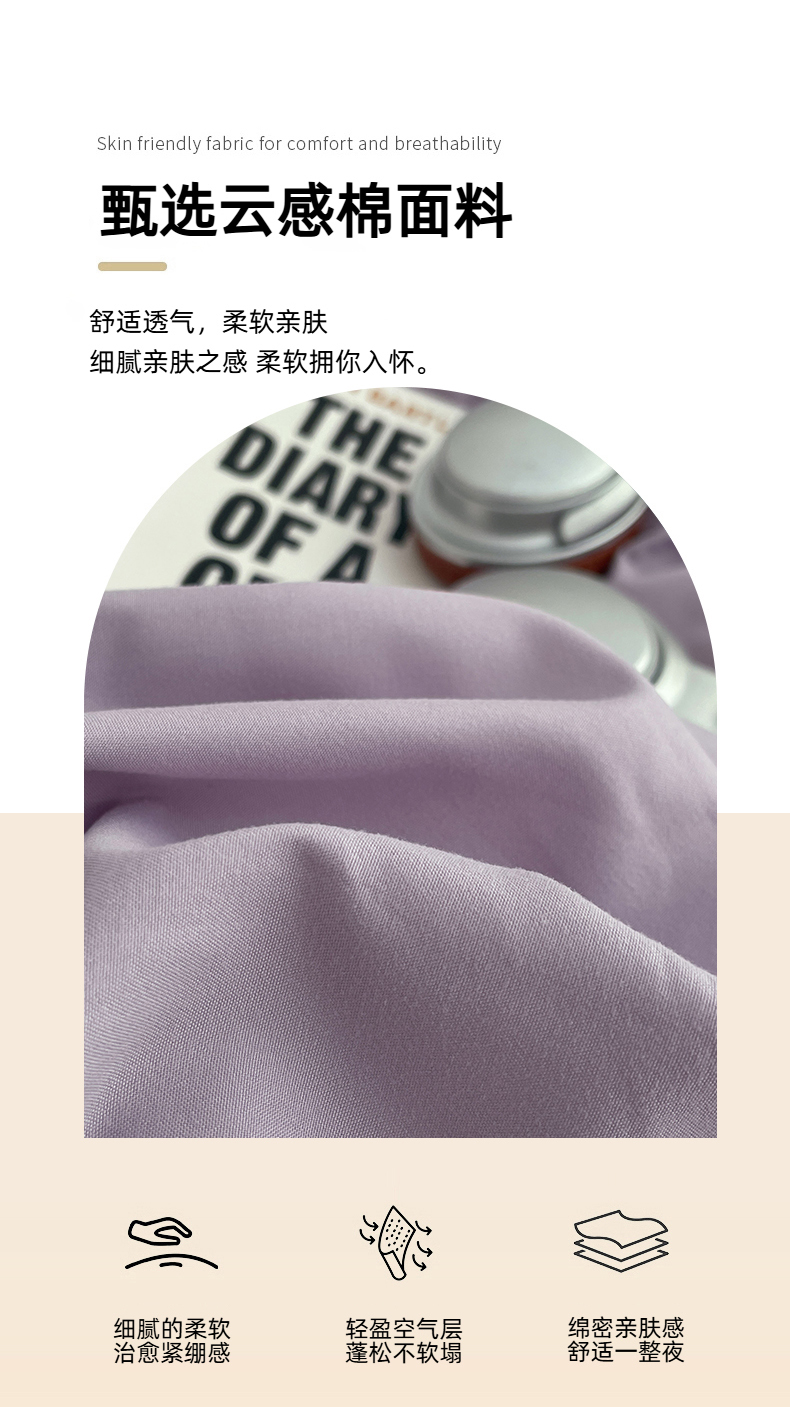 贝拉梦家纺 2026新款无印风高克重加厚云感棉三件套四件套单被套系列 雾紫深眠