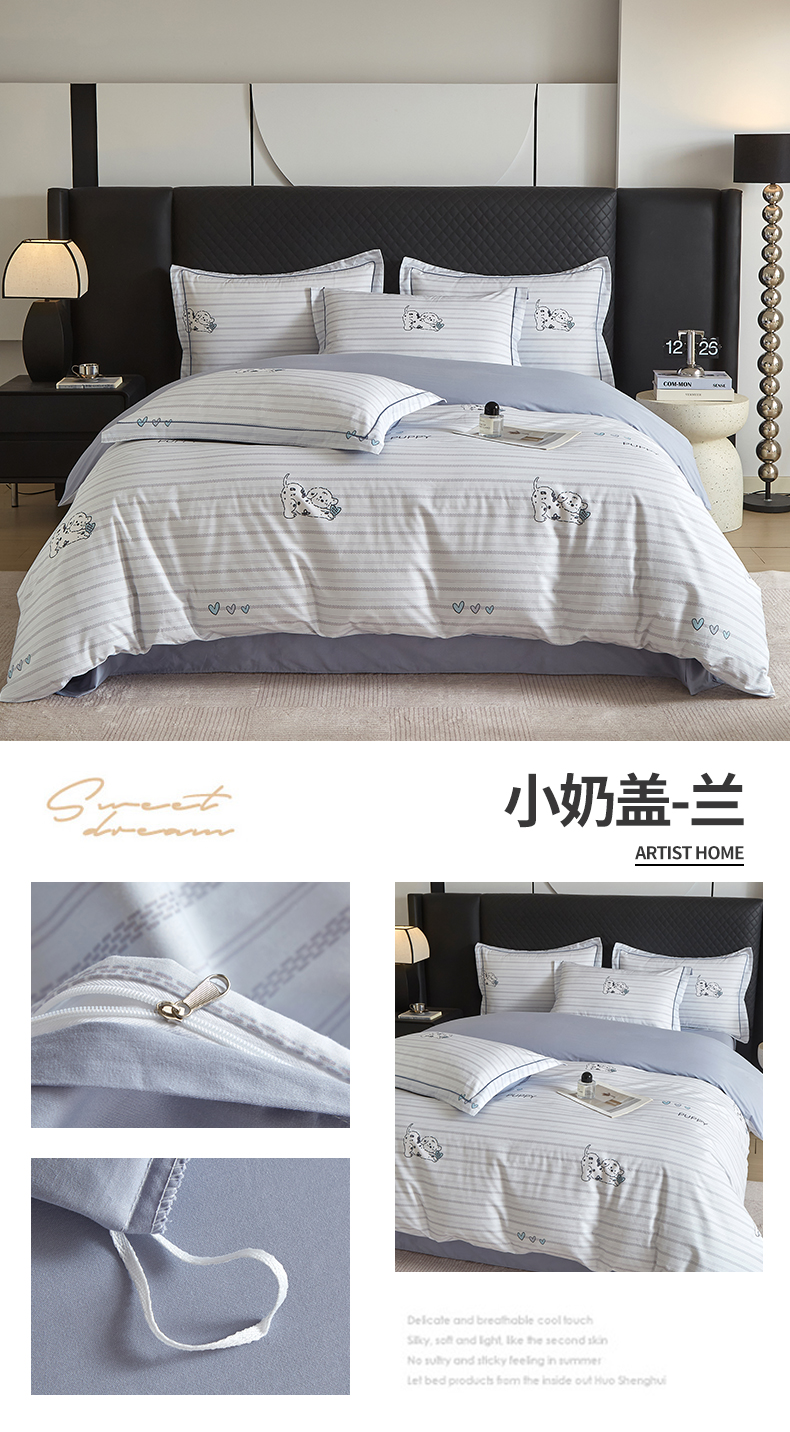 商品名称:曼秀琳 2026新款铂金棉数码印花四件套(全棉133*76) 可提供买家秀图片 小奶盖-兰