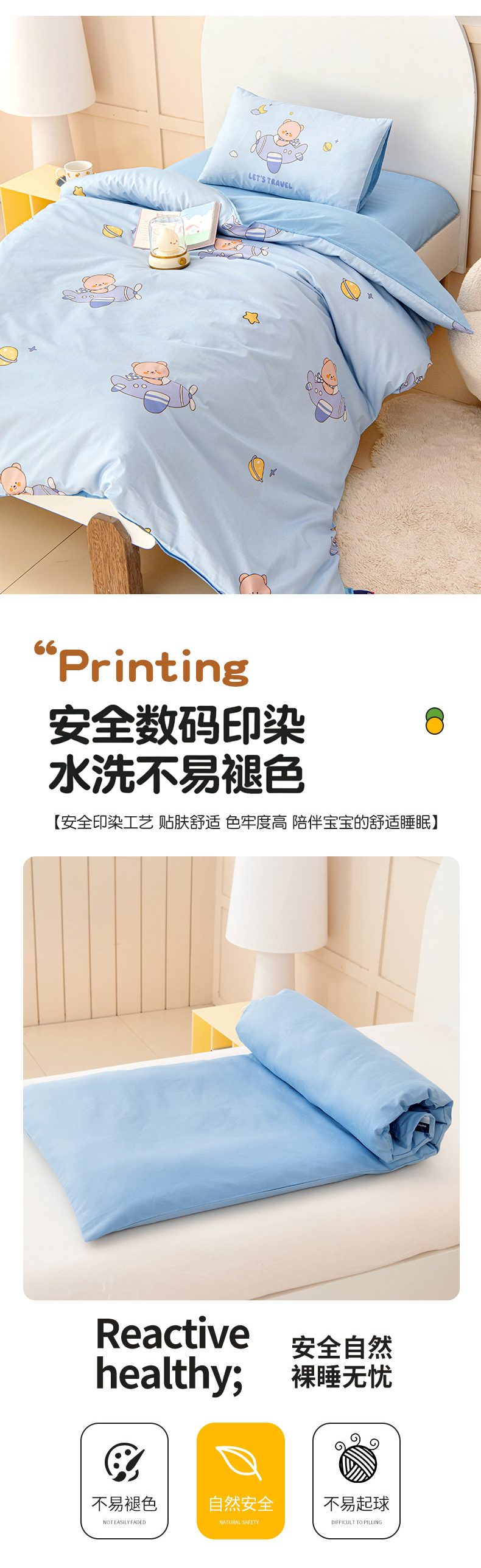 当前位置: 91家纺网 > 商品网购 > 床品套件 > 四件套 > 全棉普通四件套 > 御棉坊 2026新款A类全棉纯棉40S数码印花幼儿园入园三件套被子宝宝午睡被芯六件套 小熊飞行员
