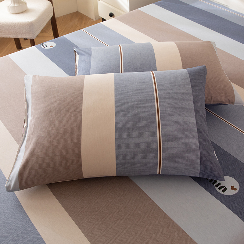 商品名称:八十八家纺 2026新款无印风全棉纯棉斜纹条格单枕套枕套单件单品枕套 青岚