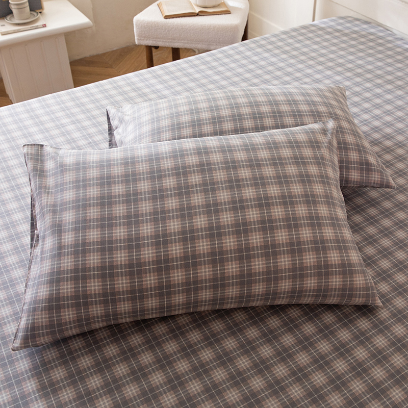 八十八家纺 2026新款无印风全棉纯棉斜纹条格单枕套枕套单件单品枕套 青岚