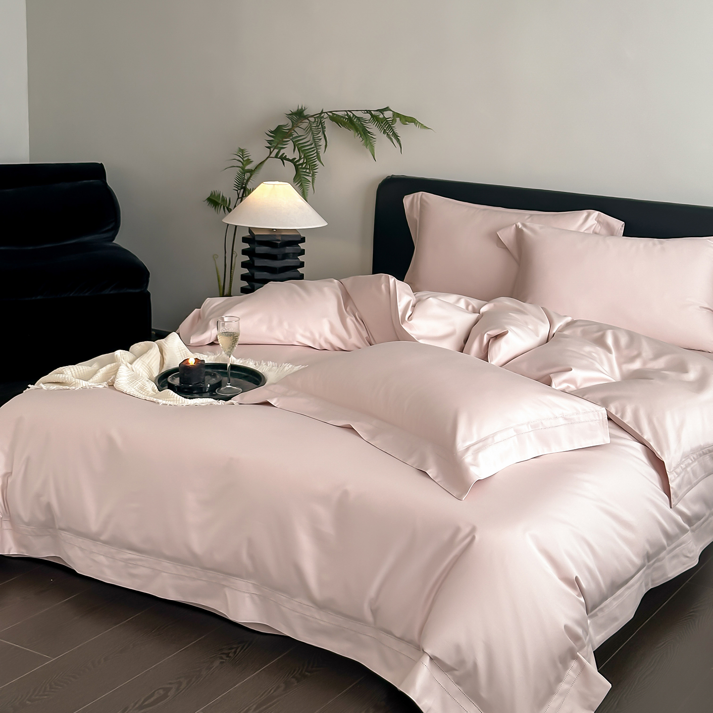 (总)卡巴伦2025新款60兰精天丝夏被四件套,晨露花园粉,晨露花园蓝