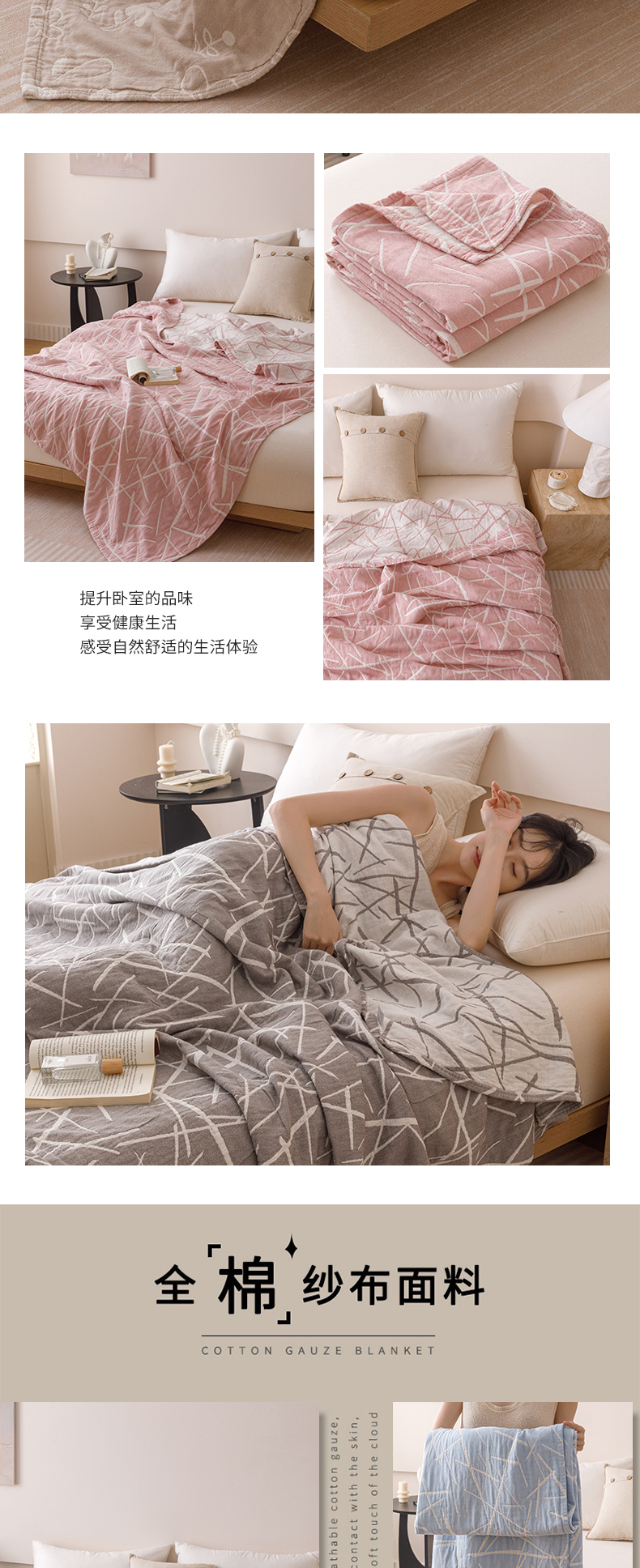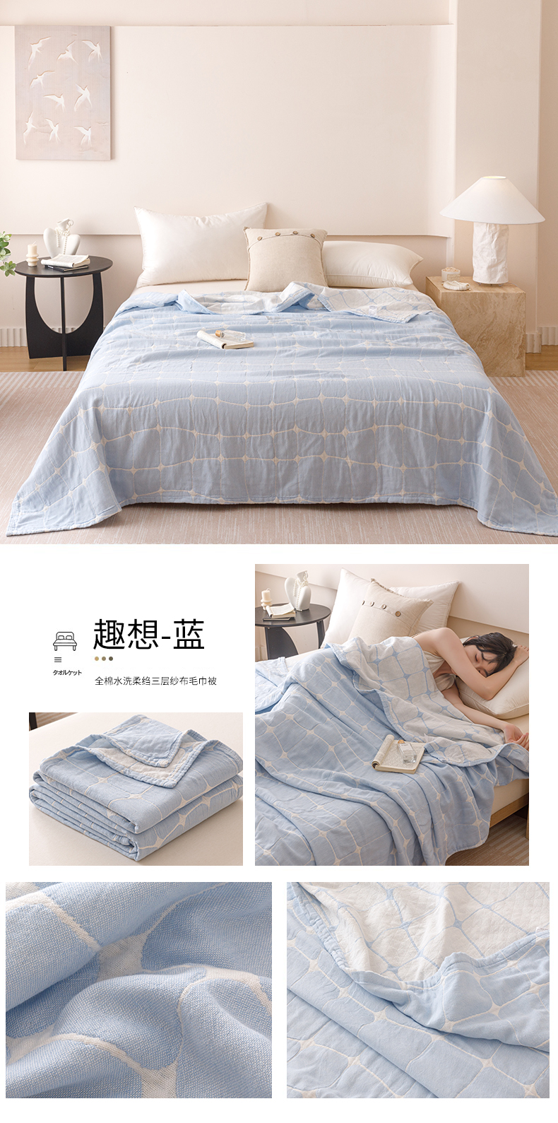 商品名称: 2026新款全棉纯棉水洗柔绉三层纱布毛巾被 趣想-粉