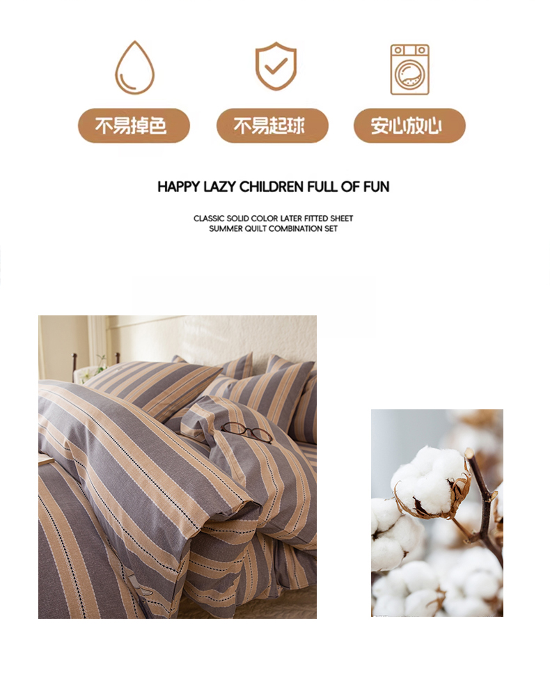 商品名称:八十八家纺 2026新款无印风全棉纯棉斜纹条格单被套被套单件单品被套 木冬